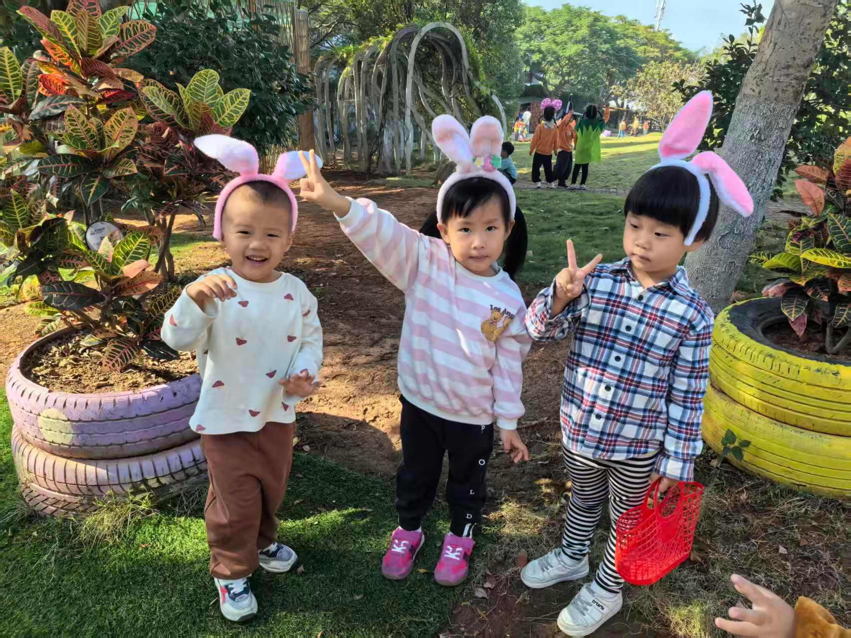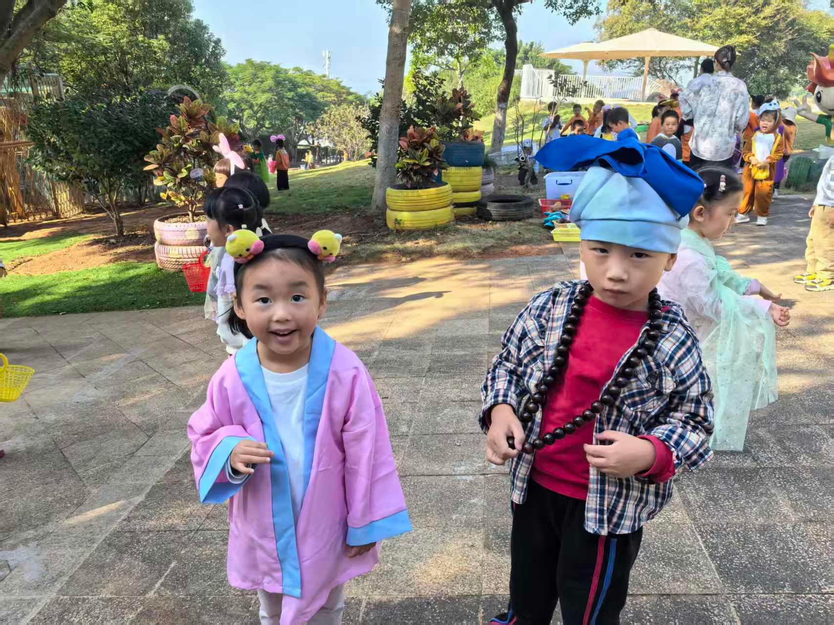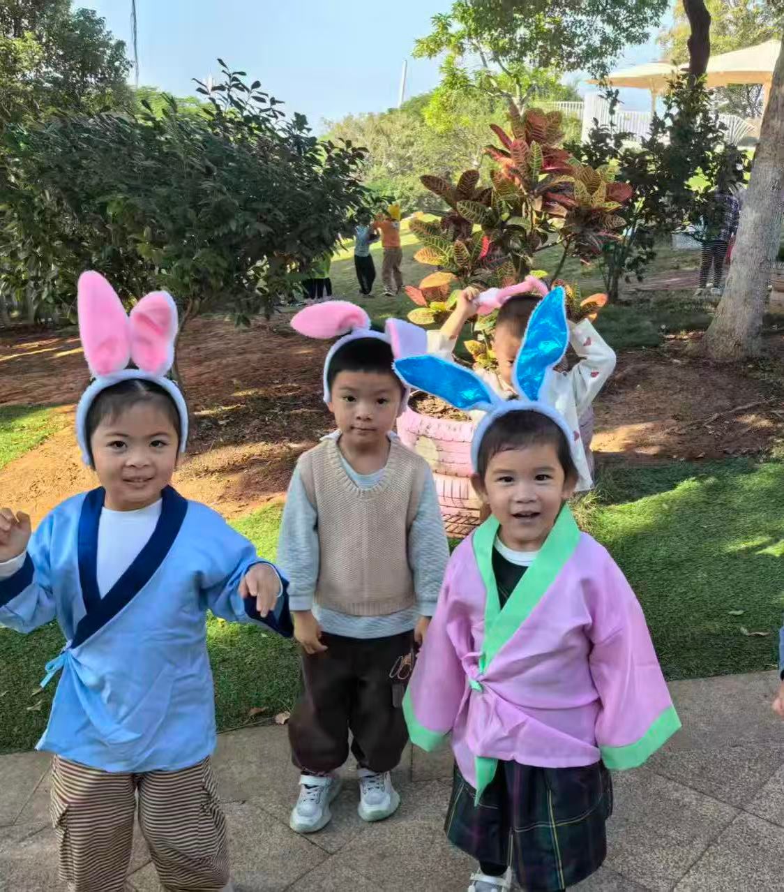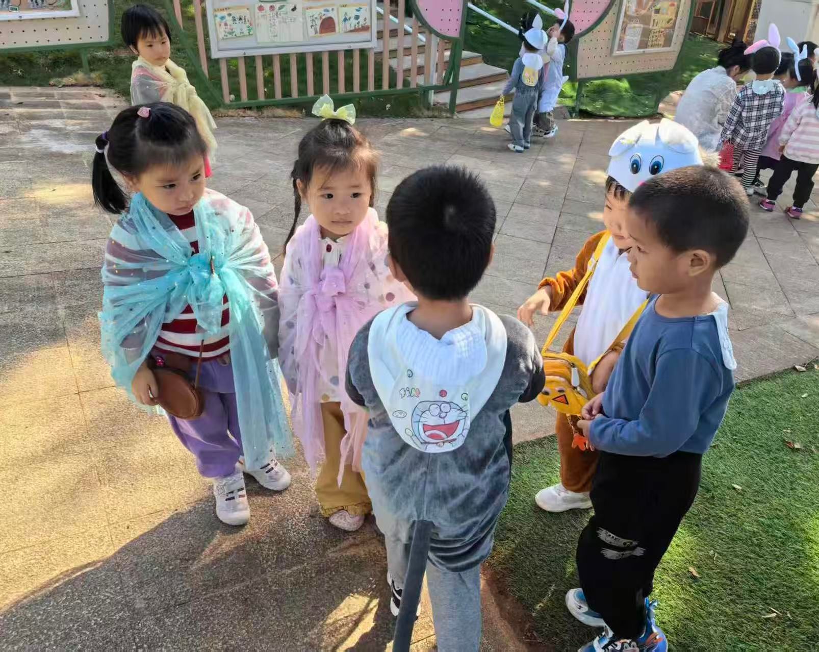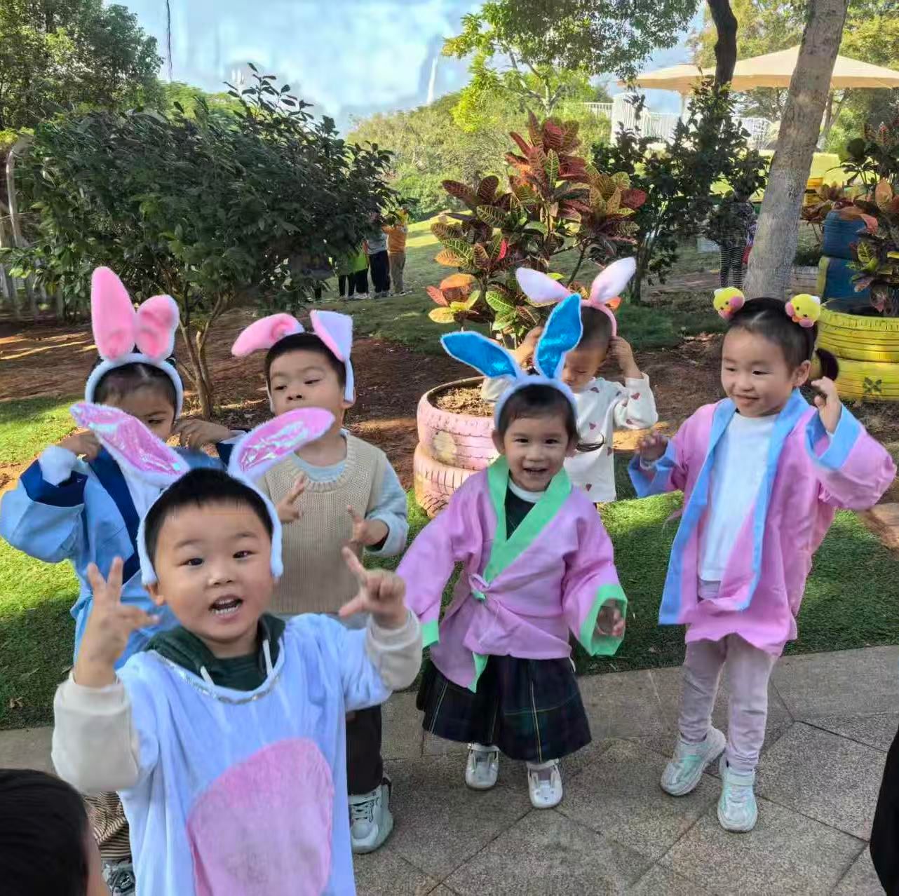 阳光洒满青青小山坡,天然舞台正式开演!身着可爱道具服的“小小演员们”,带来《小兔子乖乖》《拔萝卜》经典童趣表演。扮演小兔的宝贝蹦跳着回应“大灰狼”,扮演爷爷奶奶、小松鼠的孩子们齐心协力“拔萝卜”,认真又呆萌的模样瞬间萌化全场,欢声笑语回荡在山坡上空。