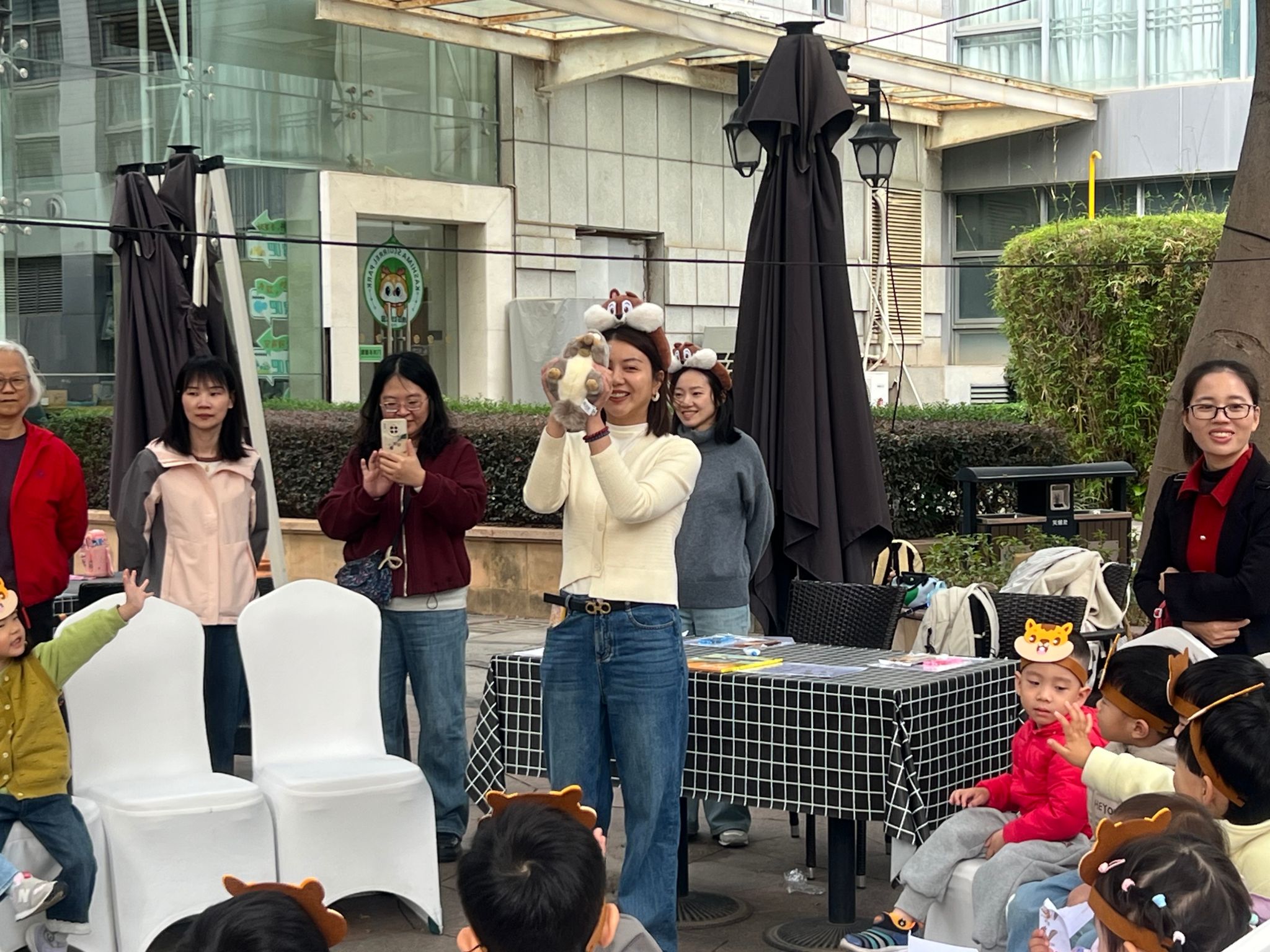 小朋友们围坐成一个大圆圈,沉浸在鹿岛松鼠乐园的温馨氛围中。诗芸妈妈正绘声绘色地讲述《松鼠觅食记》:“小松鼠忙着为过冬做准备,顾不上和其他小动物玩耍。它勤劳地收集了许多食物,终于迎来了一个温暖又充足的冬天……”孩子们听得津津有味,仿佛也跟着小松鼠一起,走进了故事中的魔法森林。