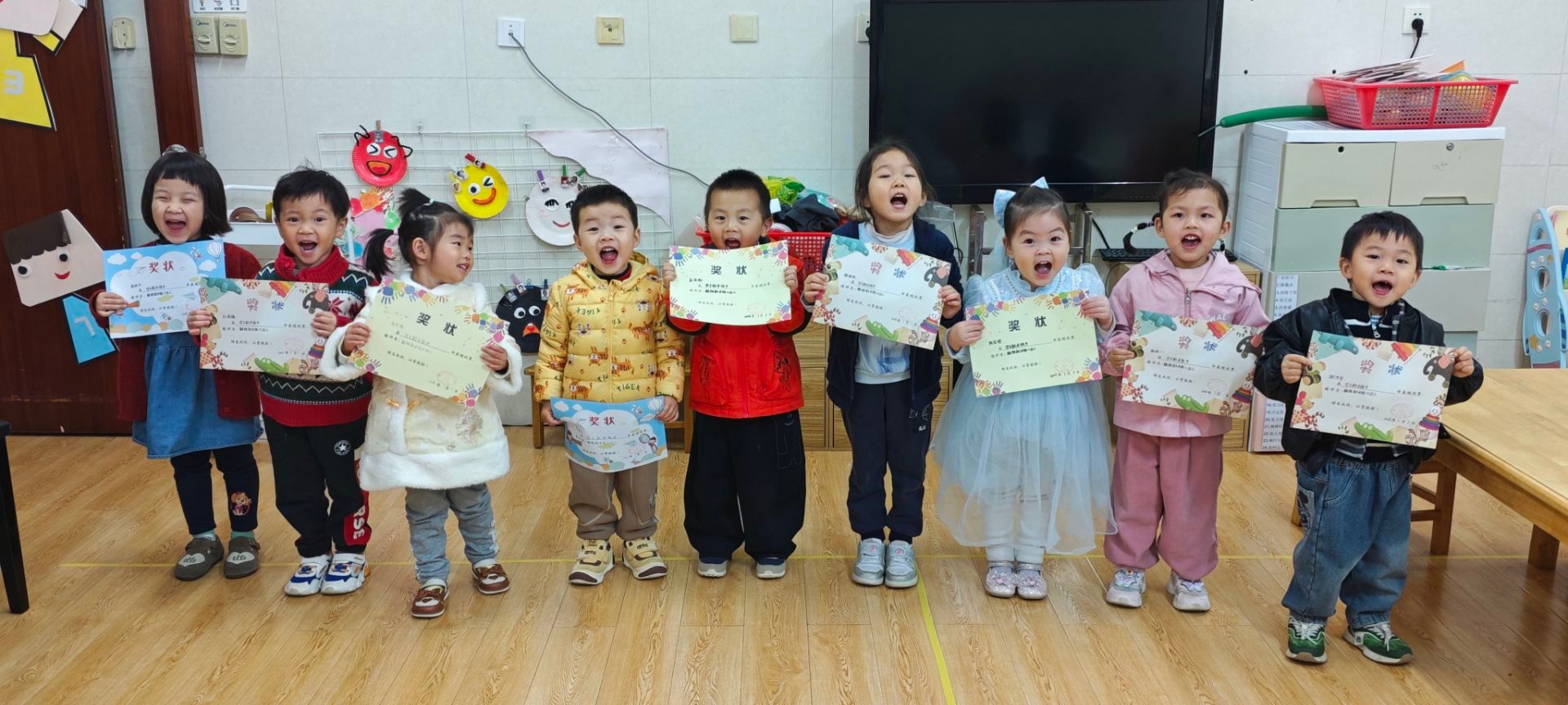 在班级的掌声与期待中,宝贝们收到了属于自己的特别奖状——有的是巧手创造的“手工之星”,有的是独立能干的“生活小能手”。接过奖状时,他们挺起的小胸膛、亮晶晶的眼睛里,装满了被看见的喜悦和满满的自豪。这一刻,我们想告诉每一个孩子:每一份努力都闪闪发光,每一次进步都值得珍藏。继续向前奔跑吧,我们的小小榜样!