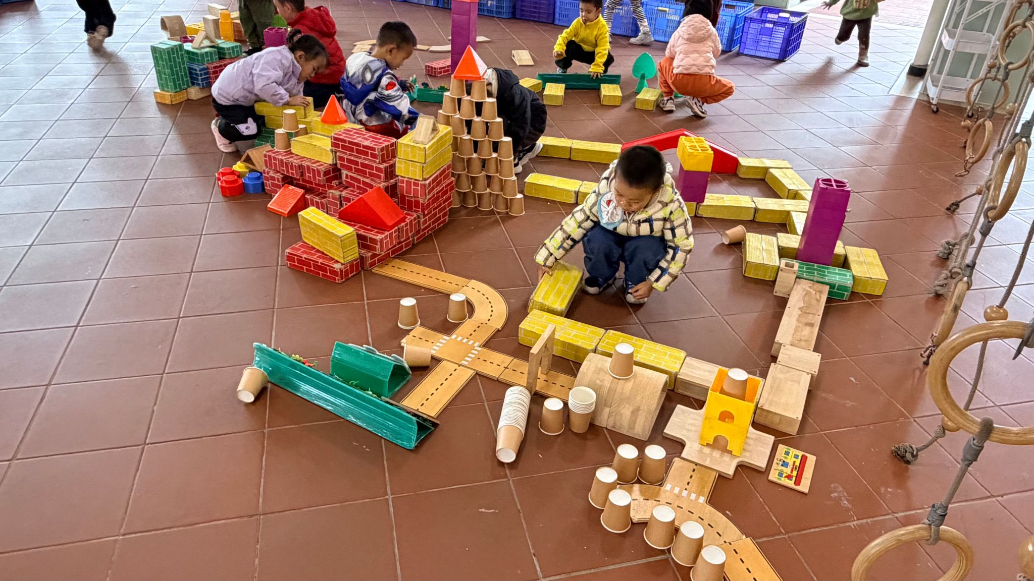 “我的房子有大大的窗户!”“我们的房子要搭得高高的,能住好多人!” 建构区里,宝贝们化身小小建筑师,用一块块积木认真搭建着心中的小屋。有的宝贝专注地垒高积木,搭建坚固的墙壁;有的宝贝细心地摆放门窗,设计独特的造型;还有的宝贝互相合作,共同完成高高的楼层。每一块积木的堆叠,都藏着宝贝们无限的想象力与创造力,看着自己搭建的房子渐渐成型,宝贝们脸上满是自豪的笑容。