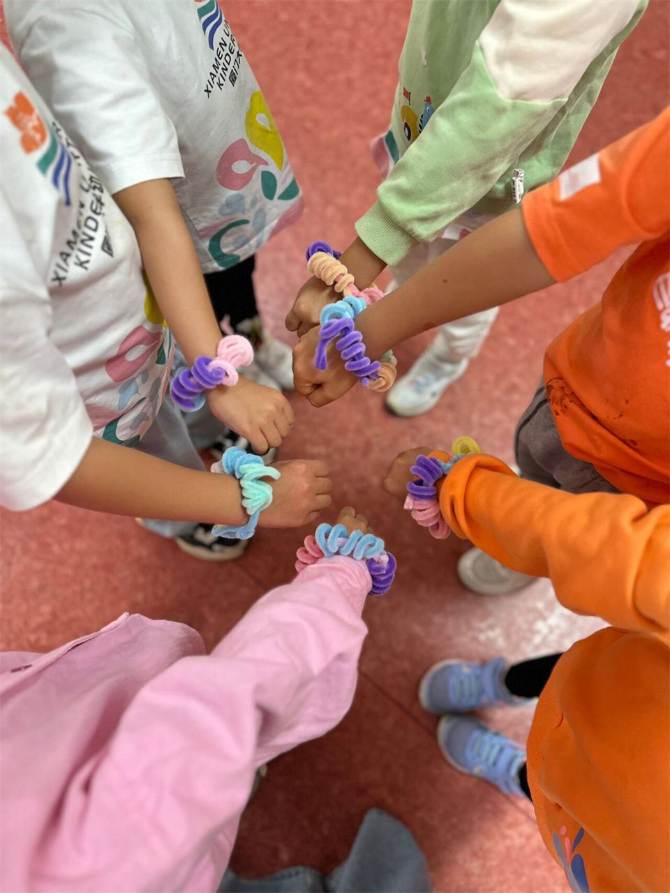 五彩线,手腕绑,美好祝福在心间”,满心的希望和期盼全化在这根细细的五彩绳上。系上五彩绳,把平安健康的美好祝愿也一同“戴”上。瞧,孩子们亲手编织的五彩绳真是太漂亮啦。