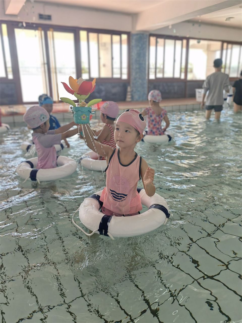 五月的暖风裹挟着骄阳,幼儿园里一场趣味横生的戏水活动火热进行中!换上可爱泳衣、戴着卡通泳帽我们出发啦。