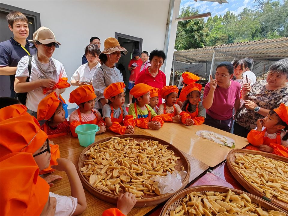 “瞧!我们和爸爸妈妈一起出发去拔萝卜、做萝卜干。”