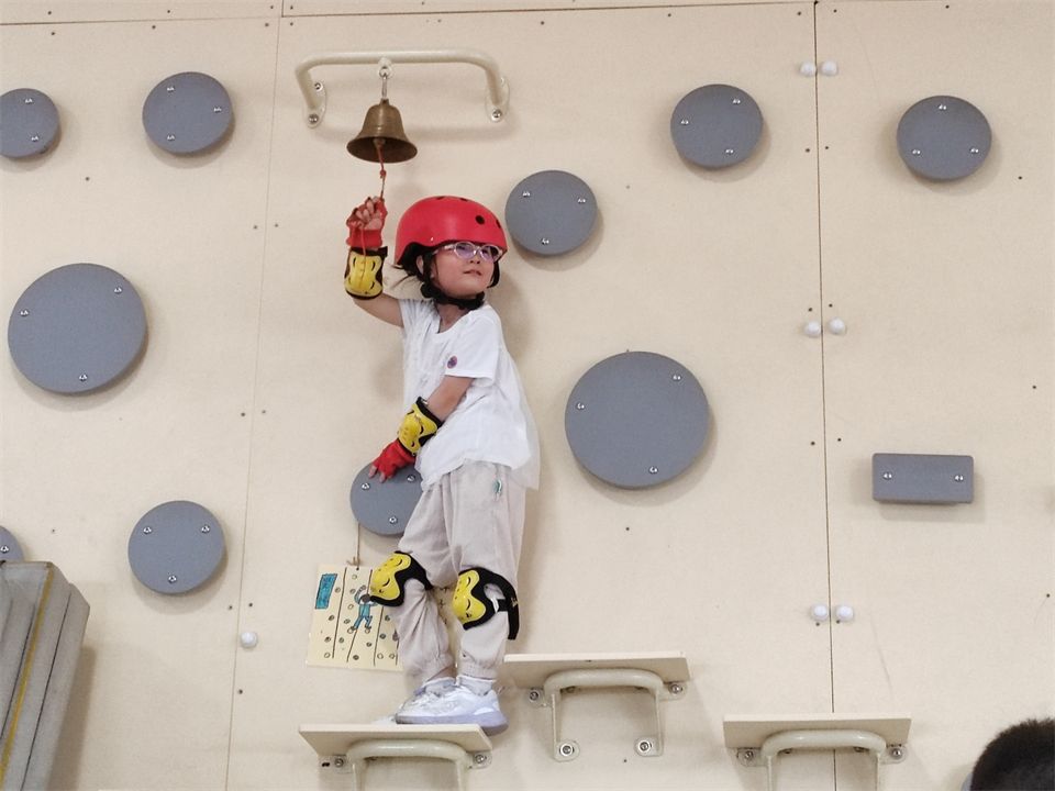 另一边,攀爬区也热闹非凡。小朋友们紧紧抓住木质的吊环,努力地移动着身体,锻炼着自己的勇气和力量。陟誉爬到高处,伸手敲响小铃铛的那一刻,脸上满是骄傲和自豪。还有在攀爬墙上努力向上攀登的孩子,每一步都充满了挑战,但他们从不退缩,在一次次尝试中不断突破自己。