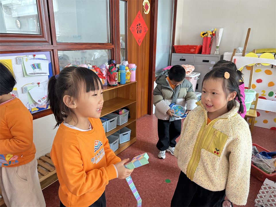 伴随着欢喜和确幸,孩子们成功按下“重启键”,欢快投入幼儿园的一日生活之中,30天的小别,许久不见的小伙伴,孩子们仿佛有说不完的话,讲不完的趣事。孩子们围绕“新年趣事”、“相约春天”进了行谈话活动、手工活动、实践活动。