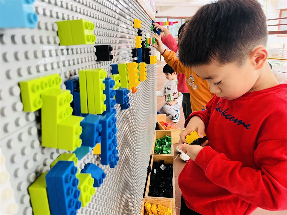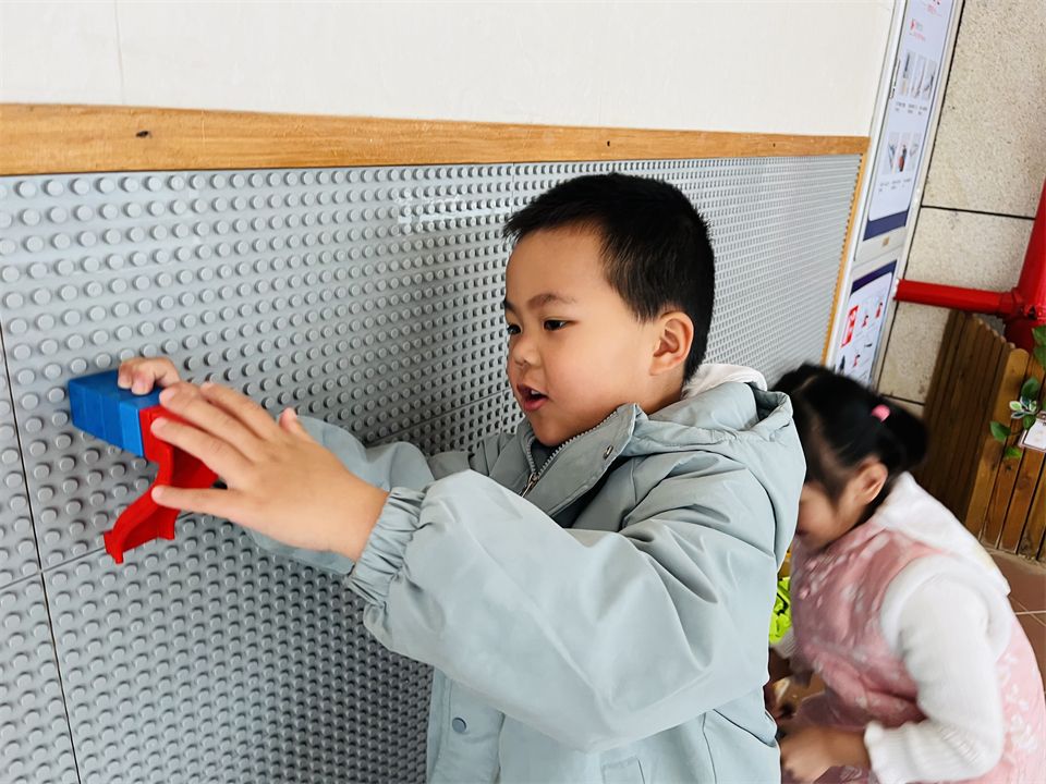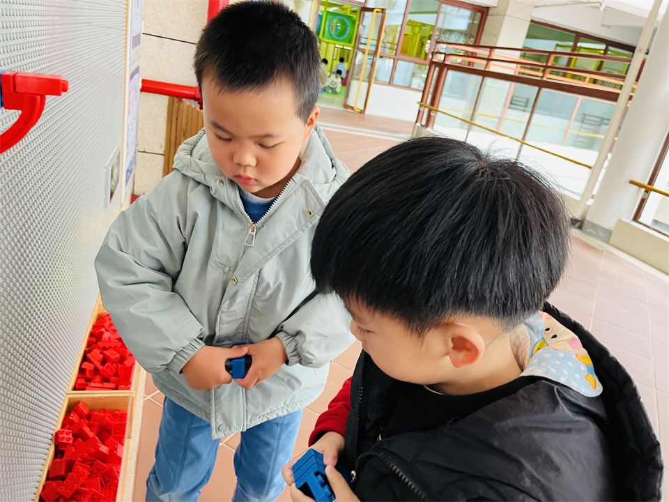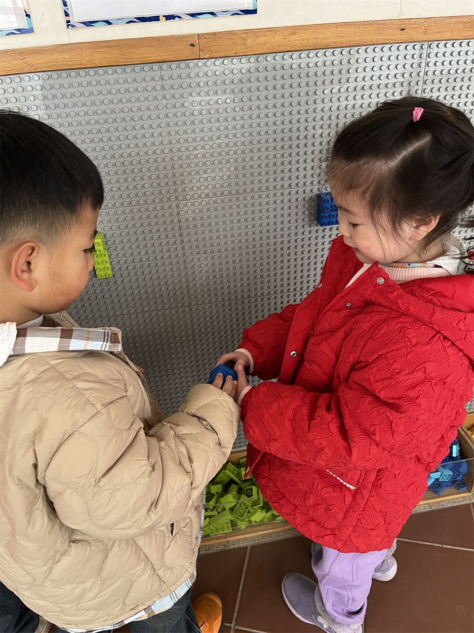 乐高小天地,五颜六色的材料吸引着孩子们,用乐高积木搭建着自己的游戏天地,哥哥和弟弟搭建滑梯乐园,两人讨论着如何让滑梯更加稳固和美观。在这个过程中,孩子们的空间想象力和逻辑思维能力得到了锻炼,同时也学会了合作与分享。