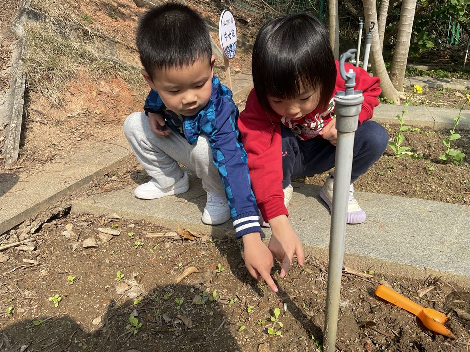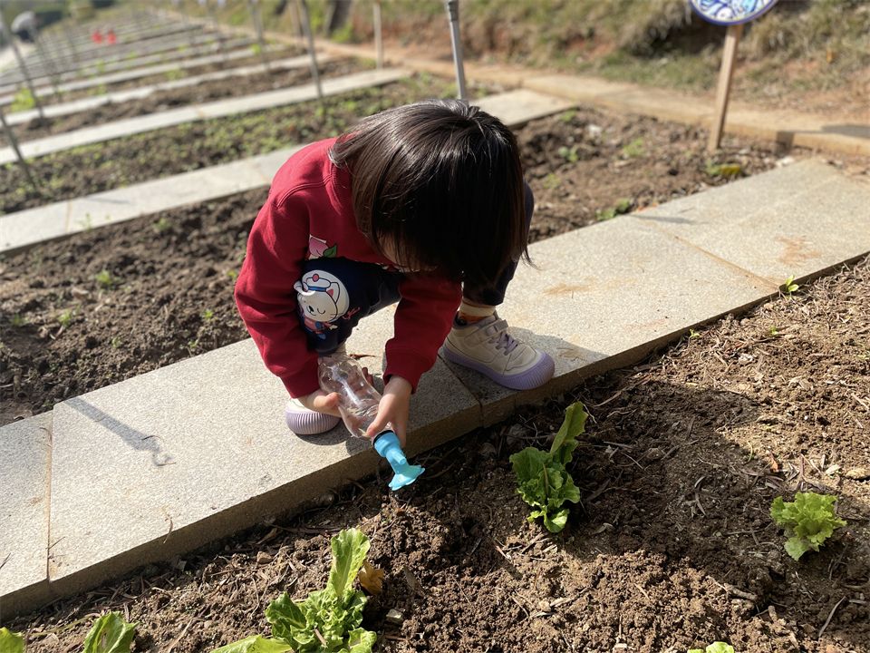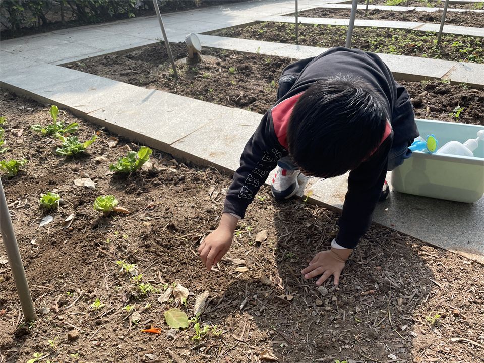 菜地里悄悄冒出的生菜嫩芽引发了宝贝们的关注:“小苗苗一天天长高啦!”他们化身“生菜小卫士”,每天的值日生负责浇水、拔草,并在记录本上画下生菜的变化。有宝贝骄傲地说:“我照顾的生菜比昨天多了一片叶子!”稚嫩的责任感在照料生命的实践中悄然生根。