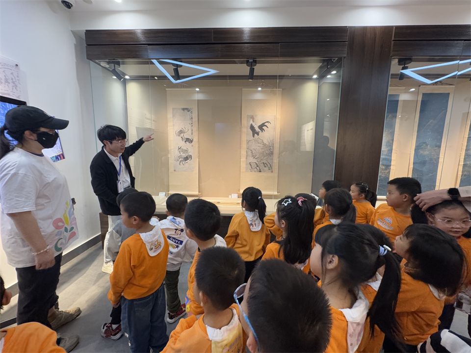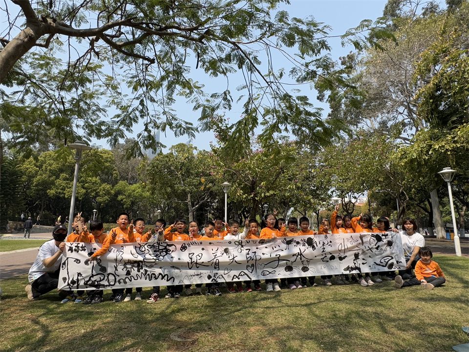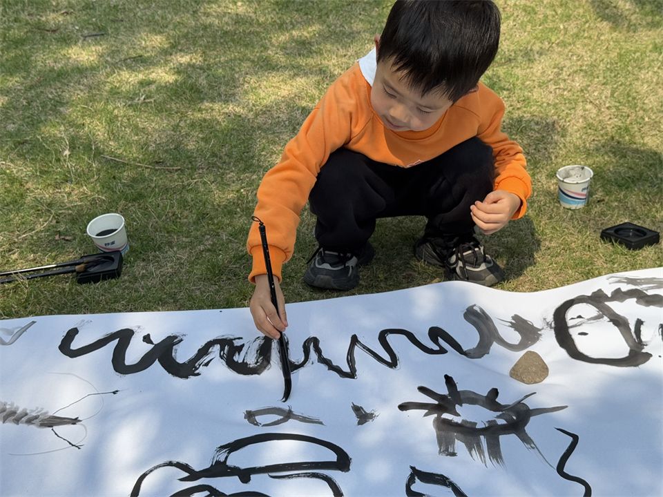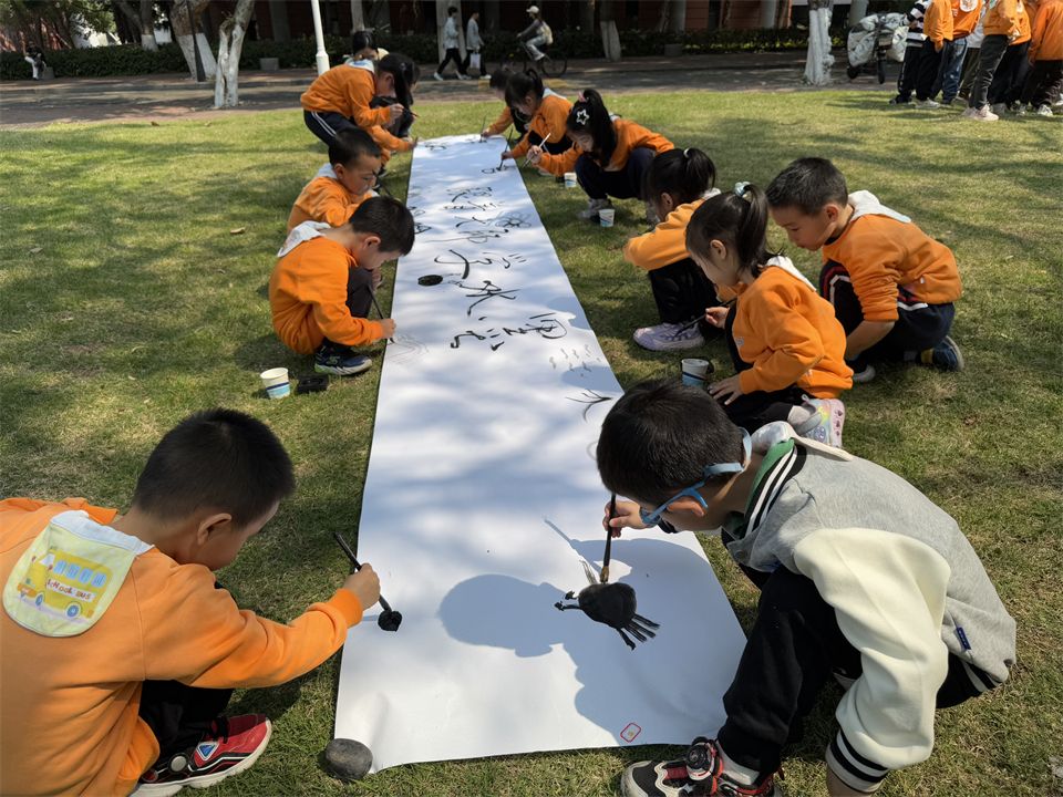 为迎接三月底的春游,宝贝们做足了准备。怀着激动的心走进人类博物馆,沉浸于齐白石笔下灵动的螃蟹、徐悲鸿活灵活现的公鸡。“水墨画像魔法游戏!”被大师感染的他们大胆尝试用毛笔创作,在长卷画纸上挥洒童趣:有的描摹远足路上的春景,有的画出嬉戏的小蝌蚪,有的是肆意行走的螃蟹……这份独特的作品将装点春游的行囊,见证艺术与自然的奇妙融合。
