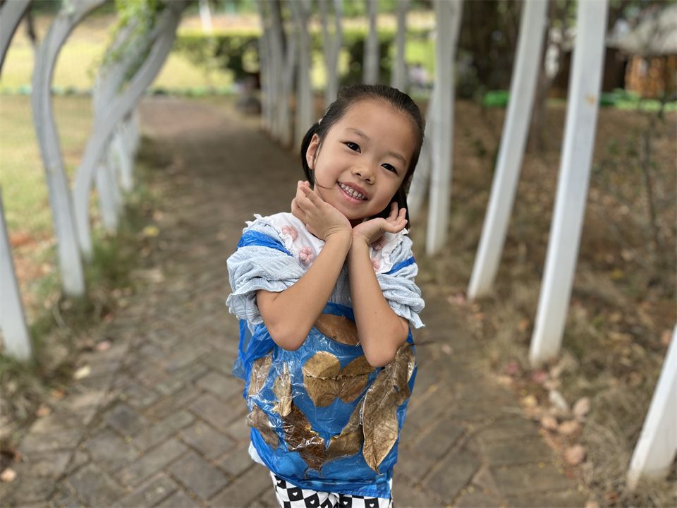 秋天的落叶、花草变成了孩子们的“时尚单品”,小小设计师们把秋叶粘贴在袋子上,制作了又酷又好看的“秋装”。