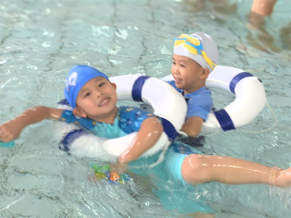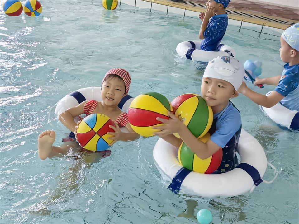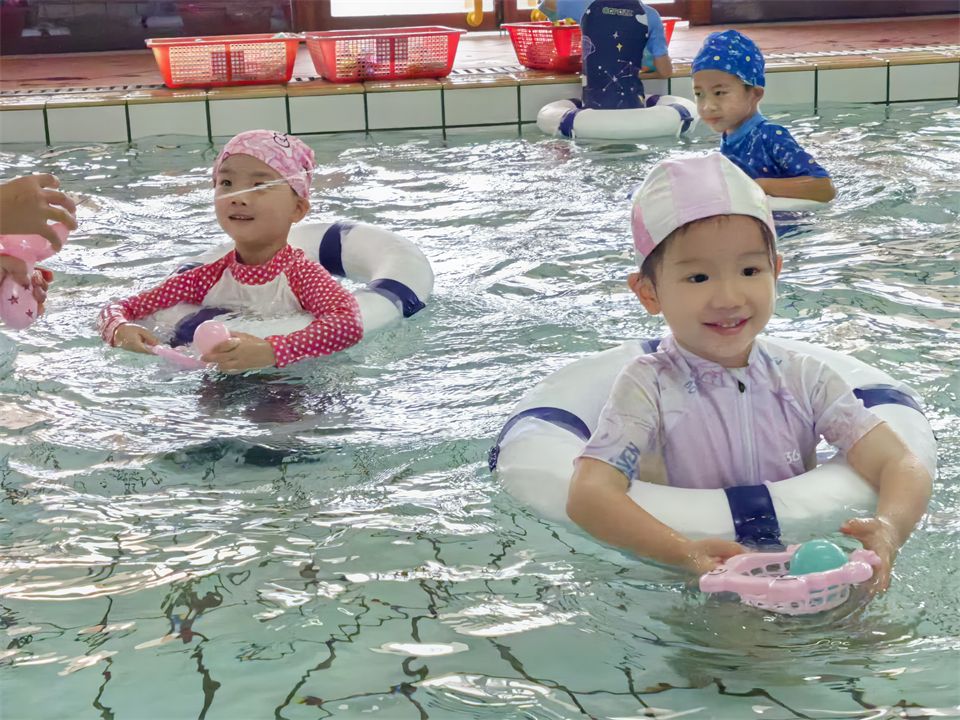 戏水活动中,他们开心地扑腾着水花,欢笑声和水声交织在一起。