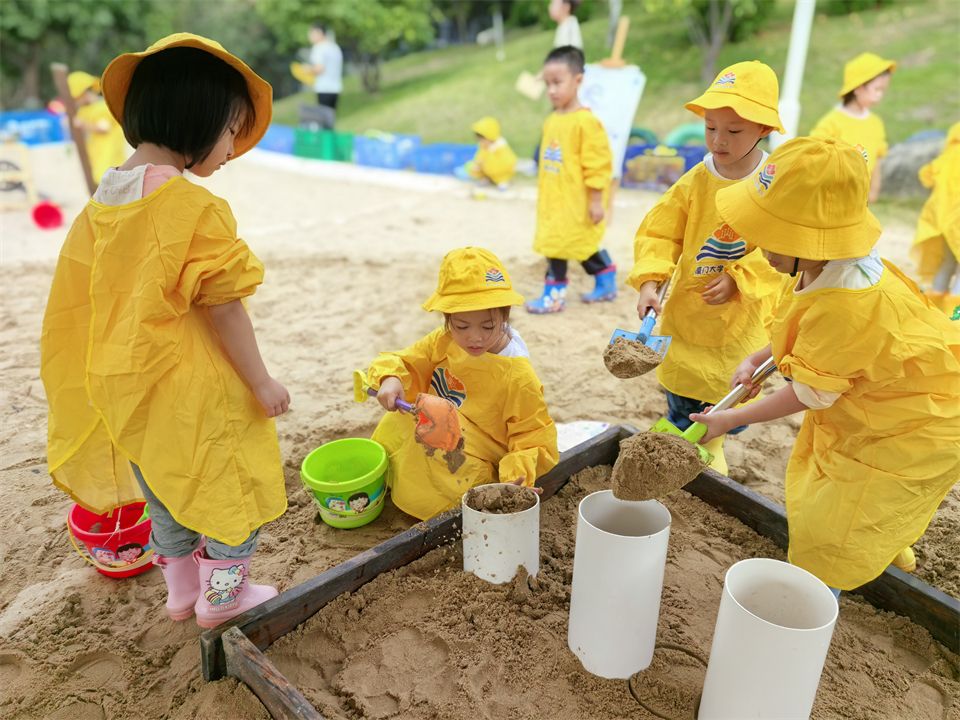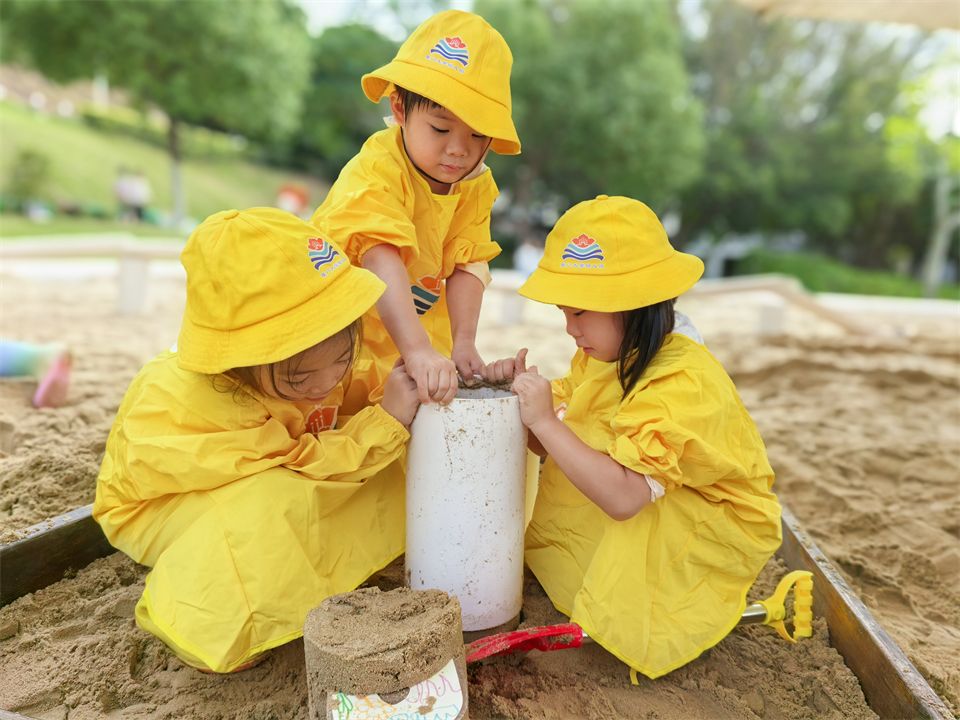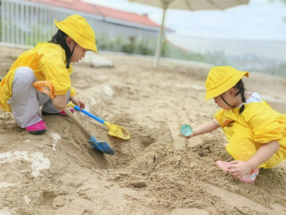 嬉笑打闹,欢声笑语。在这方属于他们的天地里,一起用沙子瞬间变幻出让人眼前一亮的作品。