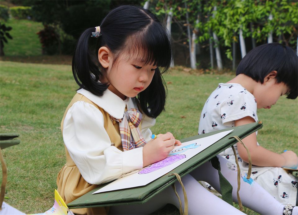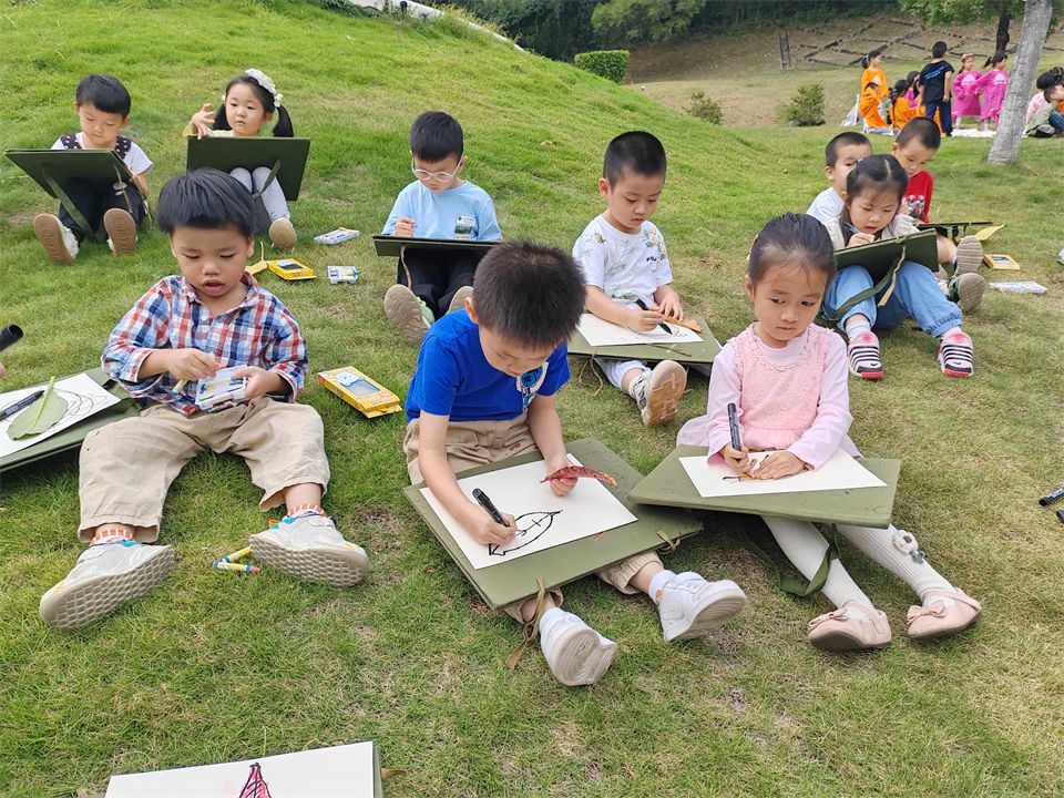 那些从树上飘落的树叶,在孩子们的手中重获新生,变成了独一无二的艺术品。在游戏与创作中,孩子们收获了快乐,也在幼小的心灵里种下了对美好事物向往与热爱的种子,为五彩斑斓的童年增添了一抹绚丽的色彩。