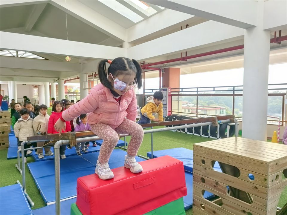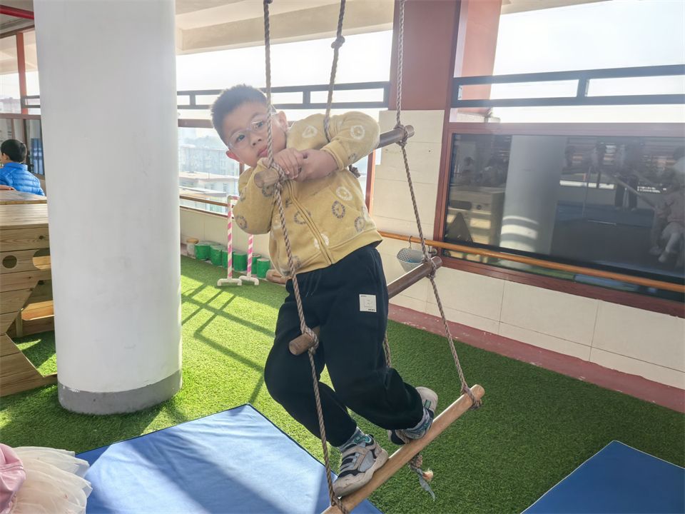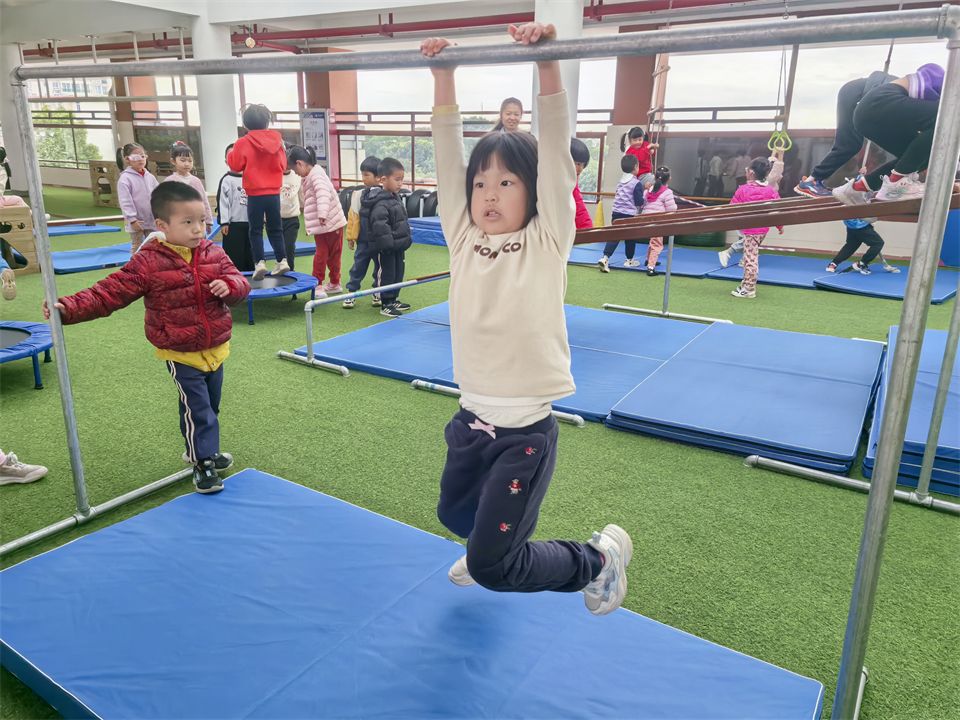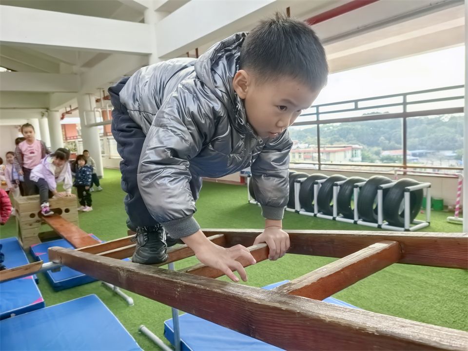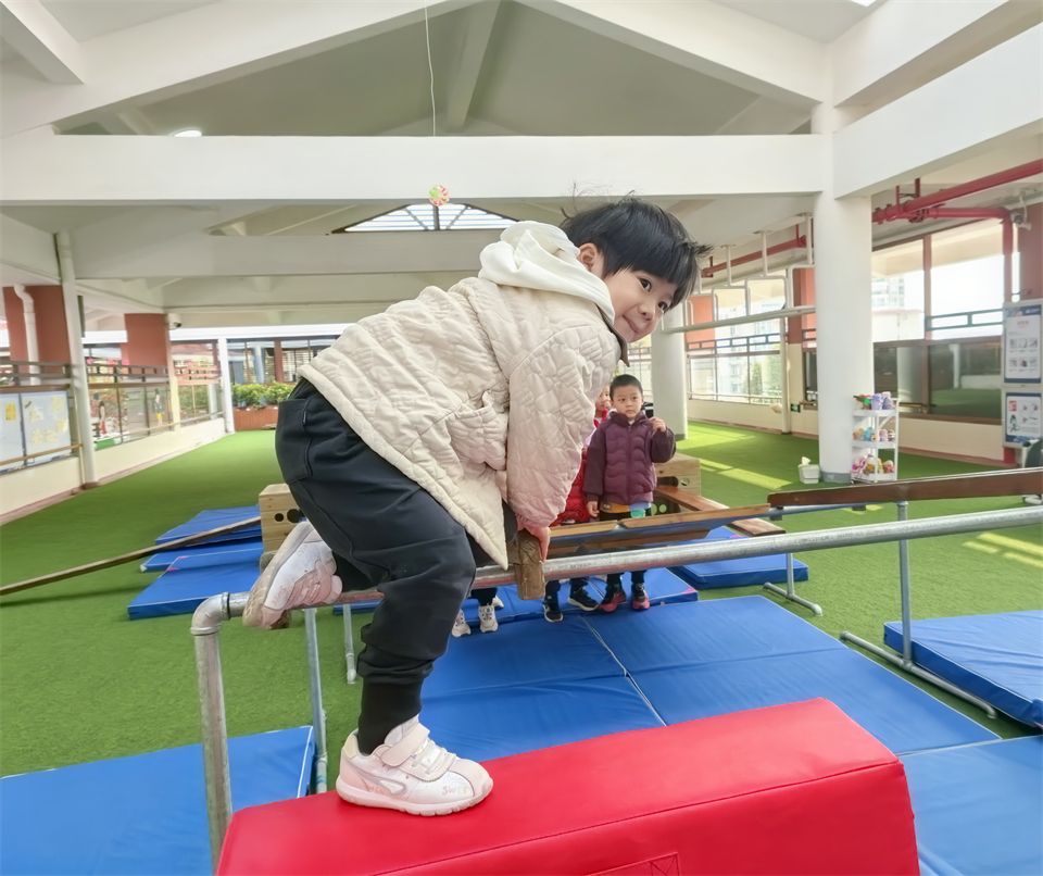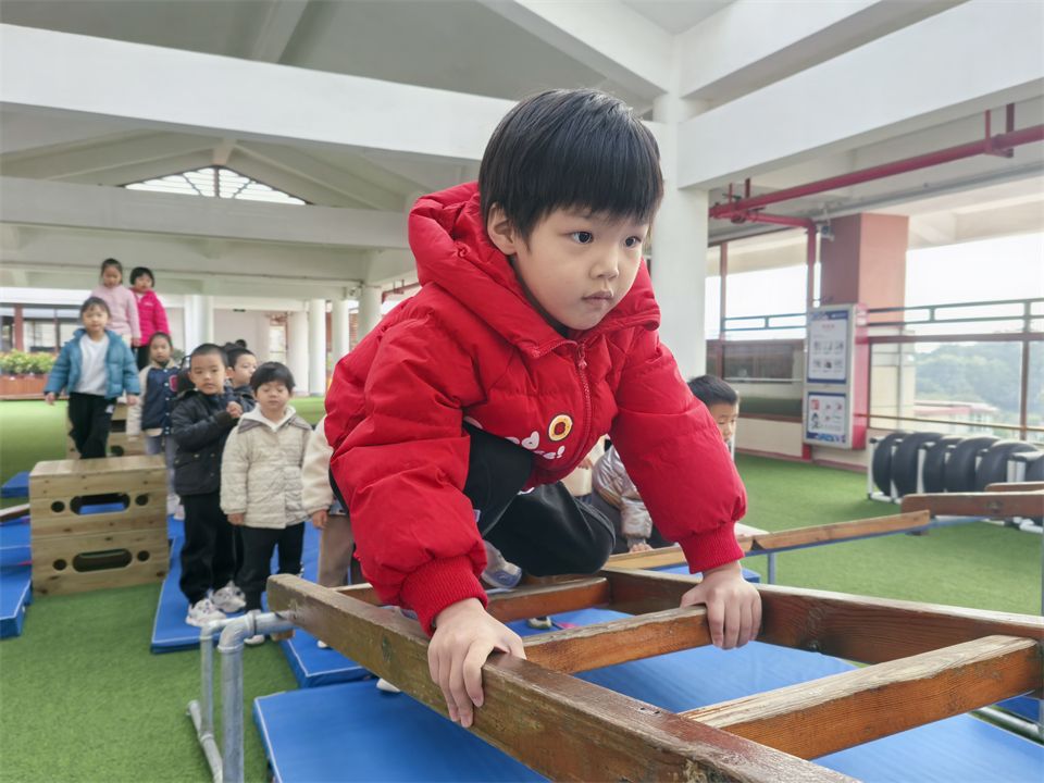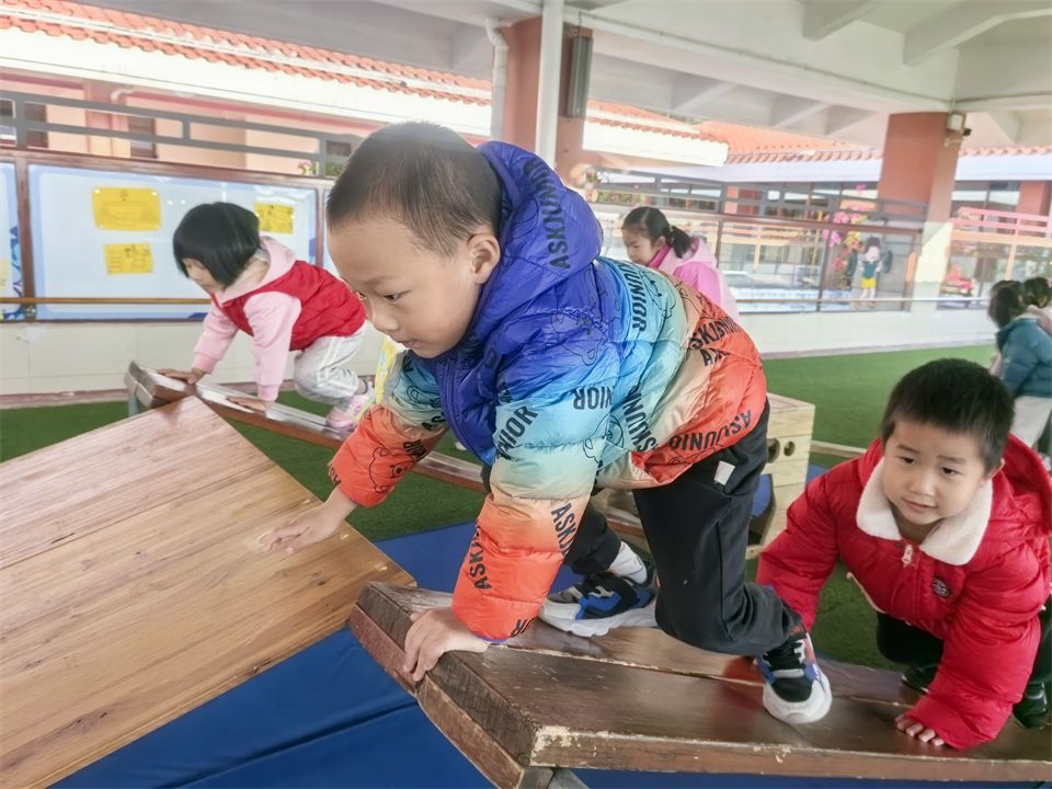 孩子们在钻、爬、跳中,开启冬日晨间运动模式。从最初的胆怯害怕到一次次的挑战成功,快乐始终不停歇!