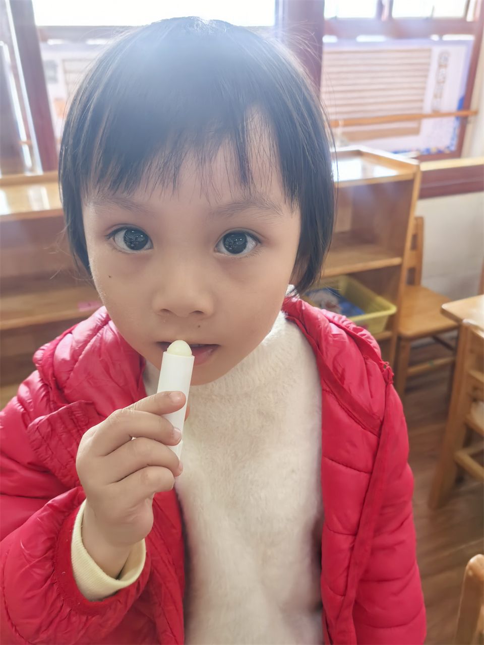 “妈妈说我的小脸冻得红红的,冬天每天起床洗脸后,都要让我抹香香!”