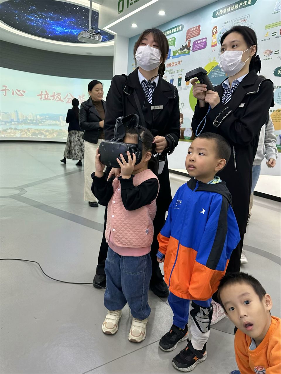 趣味VR体验、投影互动、体感游戏,可太好玩了!萌娃们认真投入地体验着,巩固了垃圾分类的知识,感受科技带来的便利和乐趣。