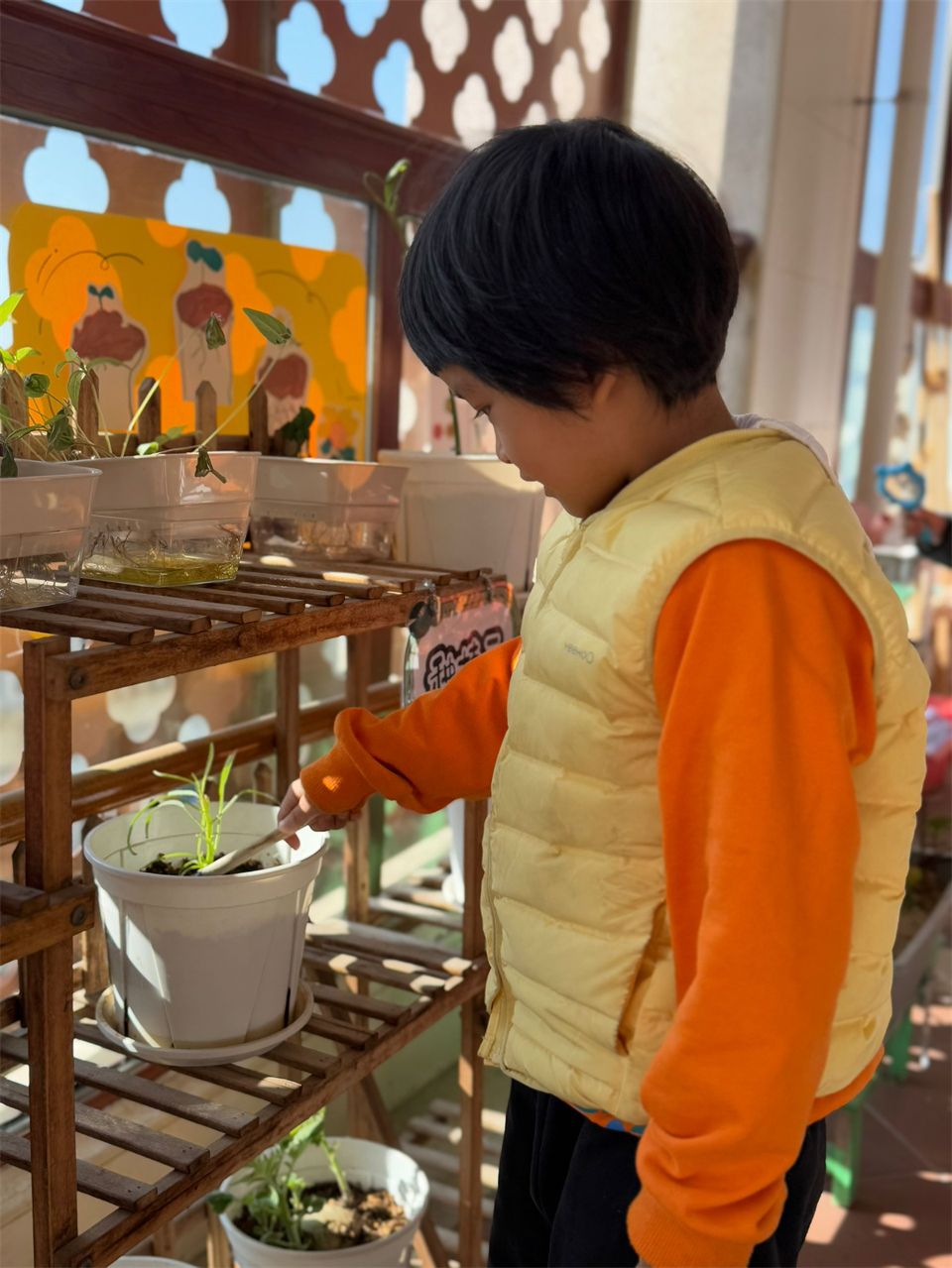 每天的区域时光,萌娃们都迫不及待地来到班级的植物角观察植物的生长变化,给这些小植物们浇水、松松土,并画下详细的记录……