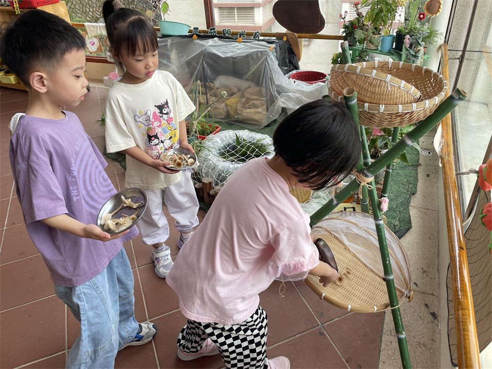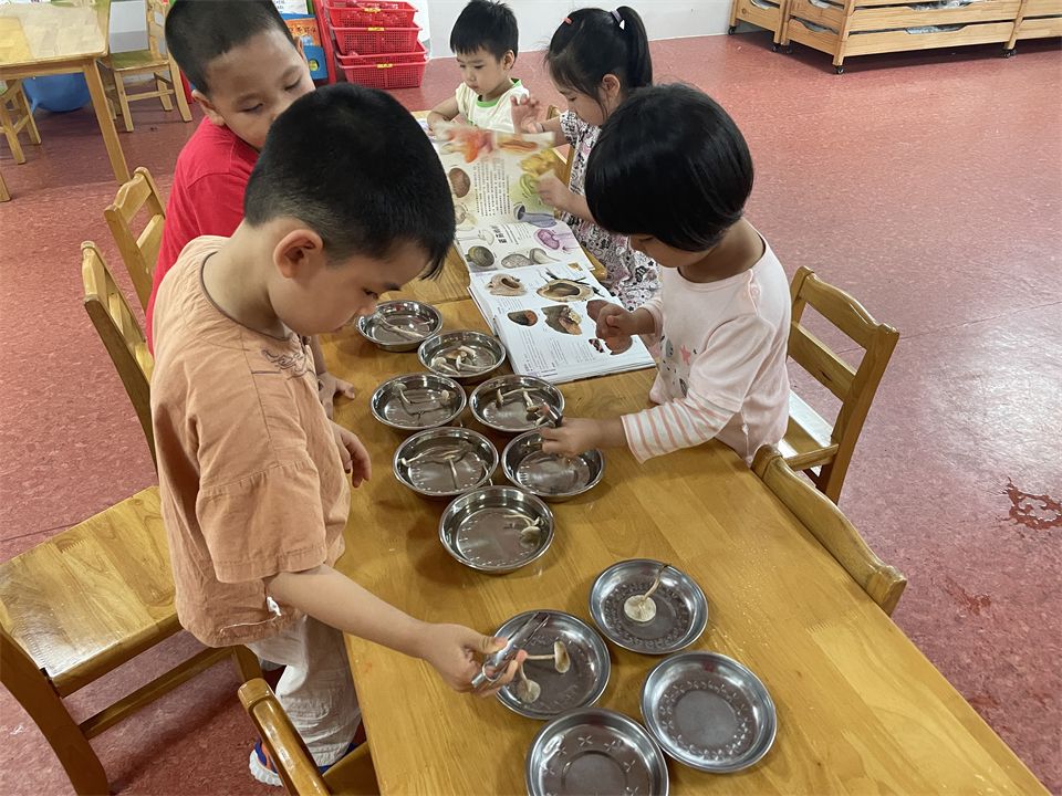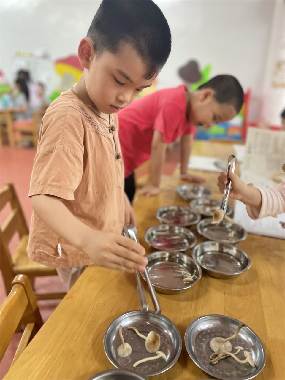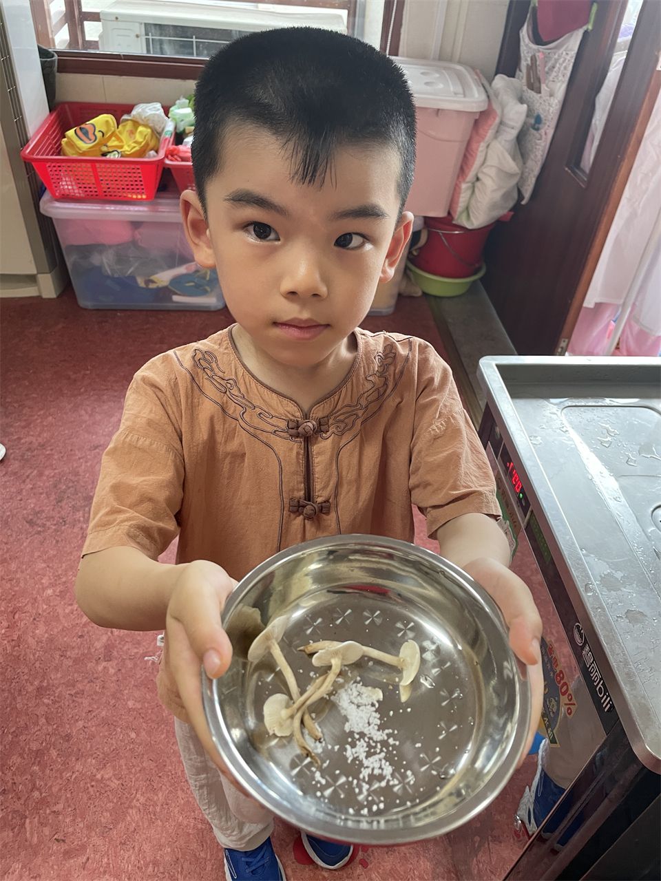当孩子们每天看着一盆盆菌菇以喜人的姿态不断成长,都盼望着等菌菇都长成了以后,能带回家和家人分享呢。这一天,终于到来了!当天的值日生率先把菌菇带回家品尝了。