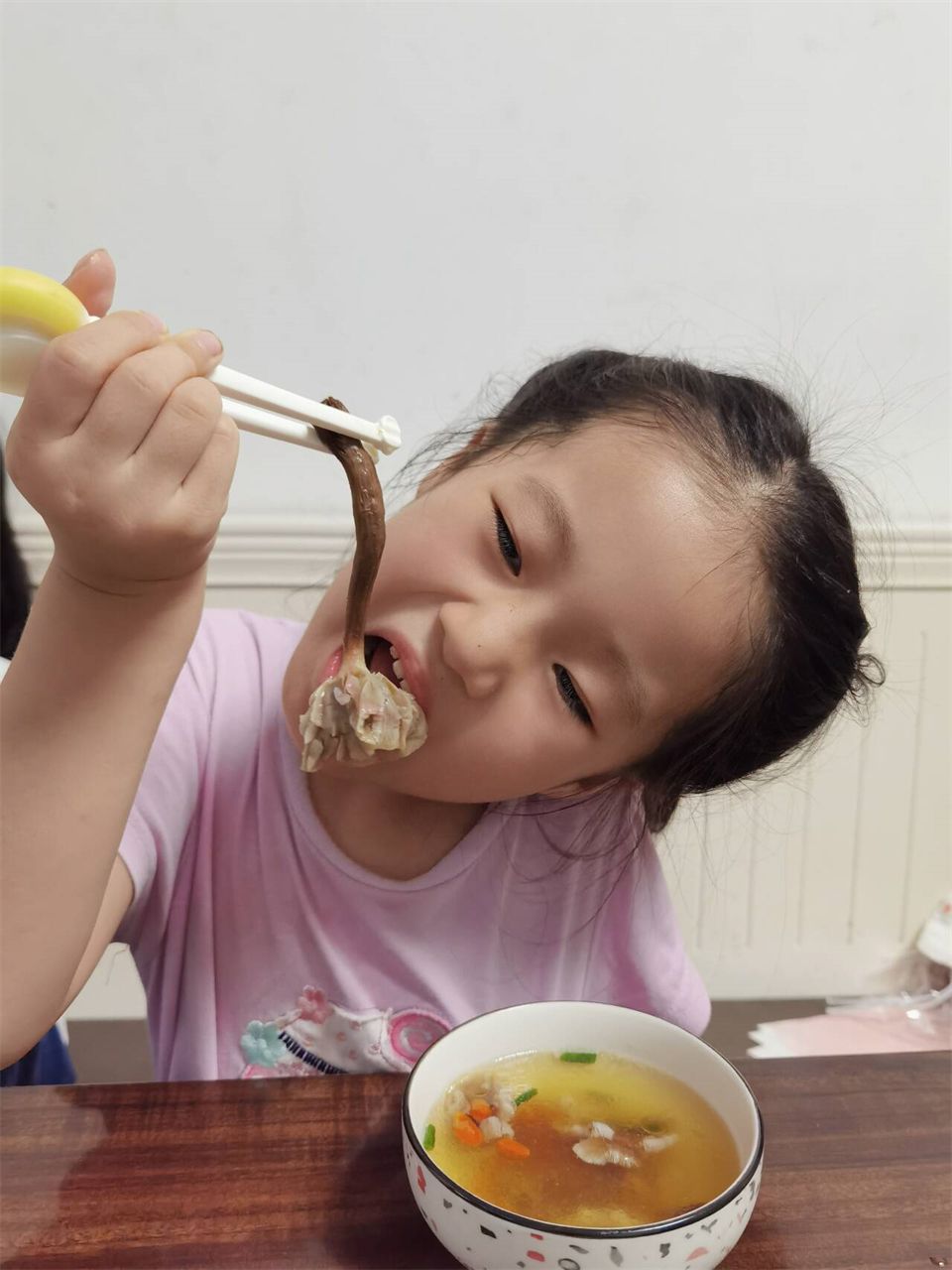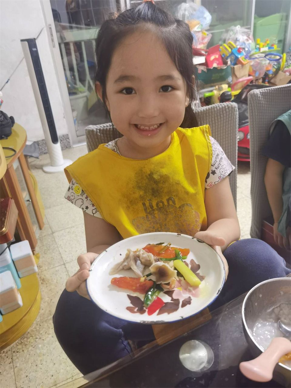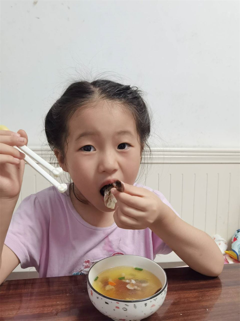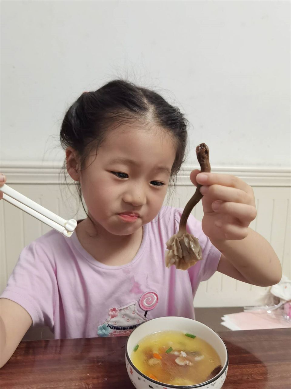 一大早,锦成就告诉老师,“我妈妈把我吃菌菇的照片发到群上了。”又笑得嘻嘻哈哈,“我看到湉言吃菌菇汤的表情,好像很难吃。”菌菇要怎么做才好吃?孩子们根据自己家里做的菜谱,展开了讨论。彩虹家的是炒素菇,她觉得加上胡萝卜和蒜很香;锦成家是菌菇炒肉,他也觉得好吃。木易爸爸就是用水焯了一下,没有什么味道。湉言家做汤,其实味道还不错;芊语家用来炒蛋,鸡蛋的味道重了些。原来菌菇本身是没什么味道的,需要其他肉类和蔬菜类的搭配才能激发它的鲜美,期待着接下来有更多的美食。