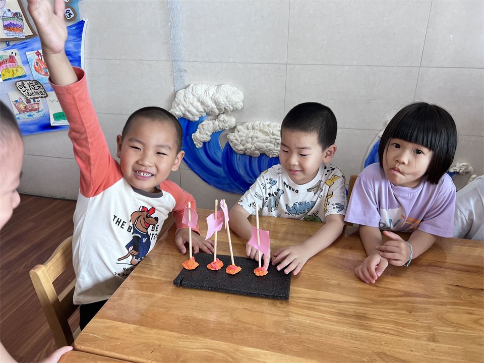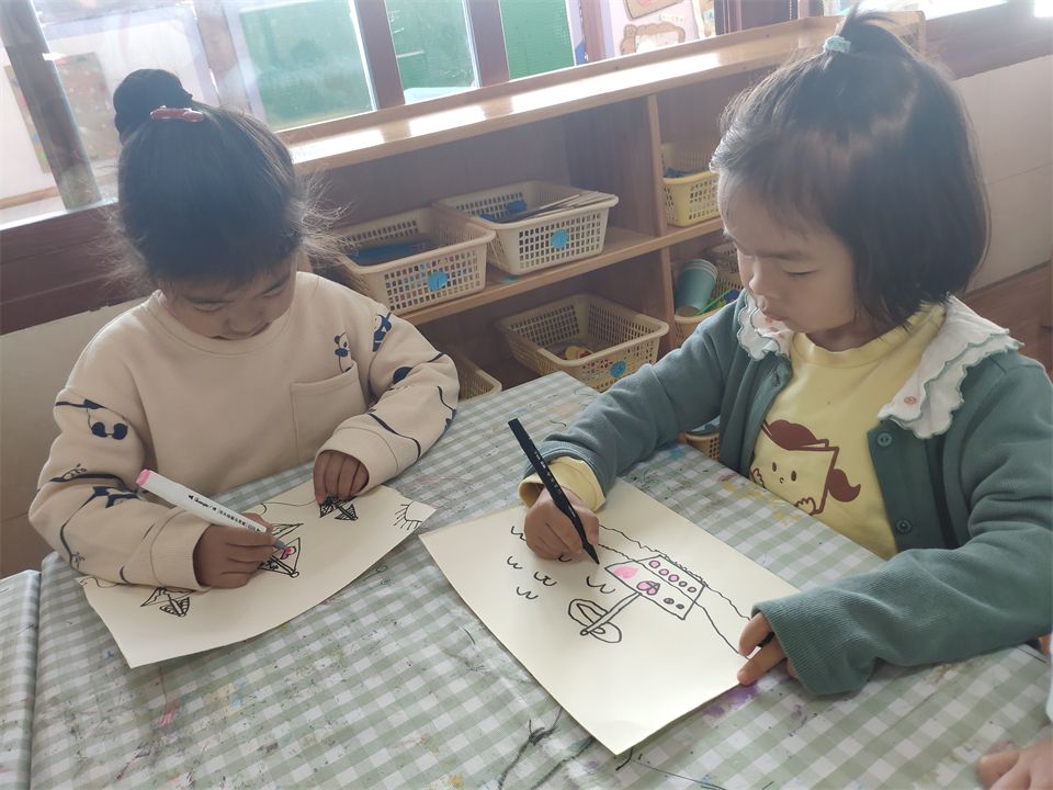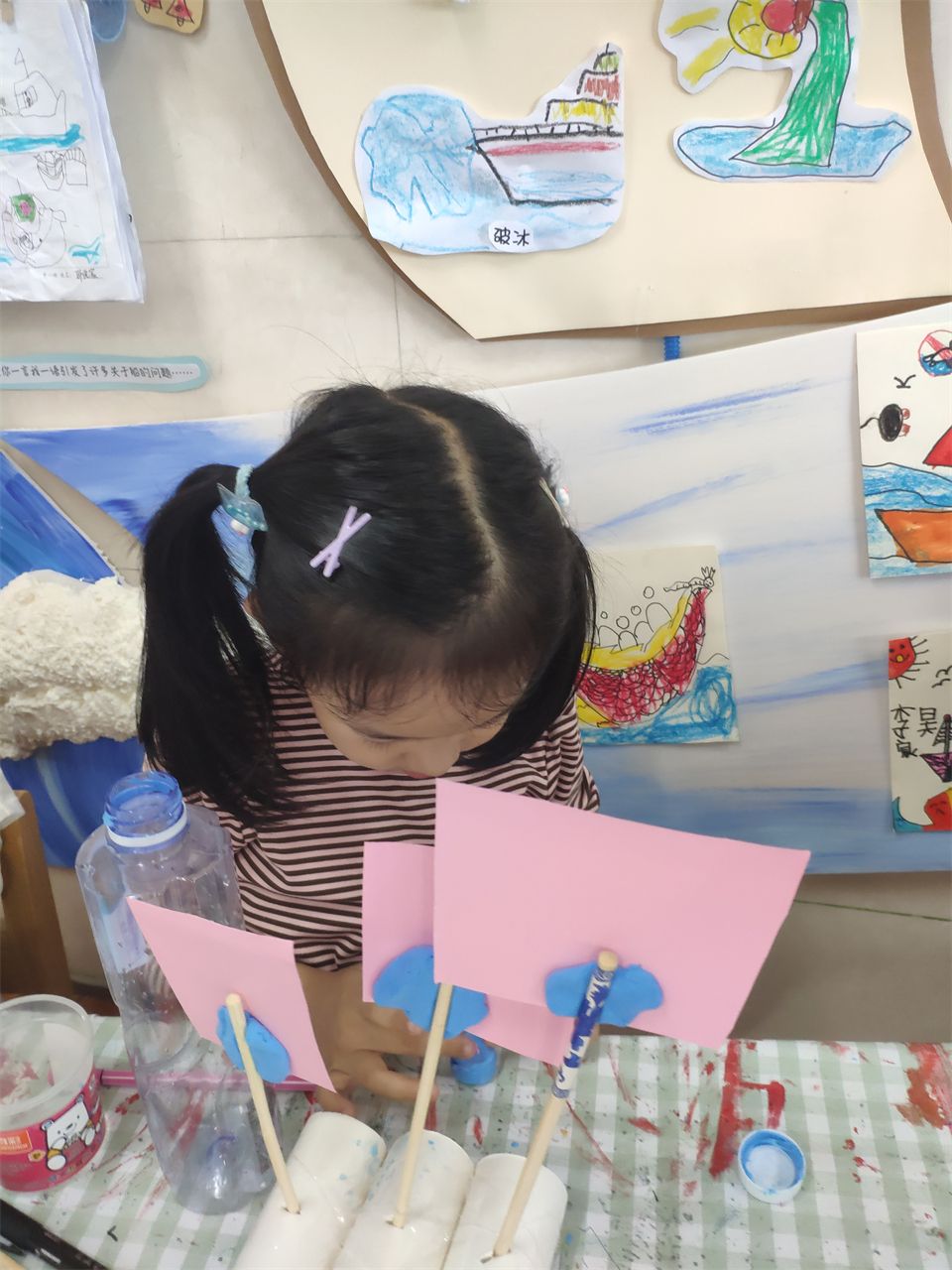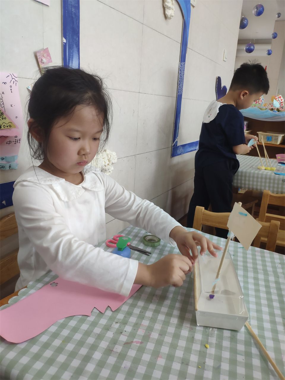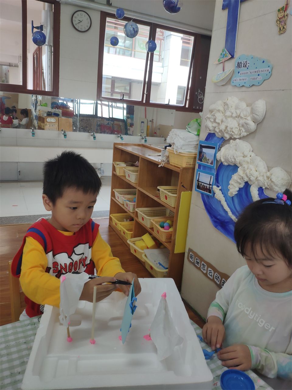 孩子们造船的积极性可高了,他们迫不及待的开始设计了!用画笔画下他们天马行空的想法,并设计出一艘艘形态各异的小船。