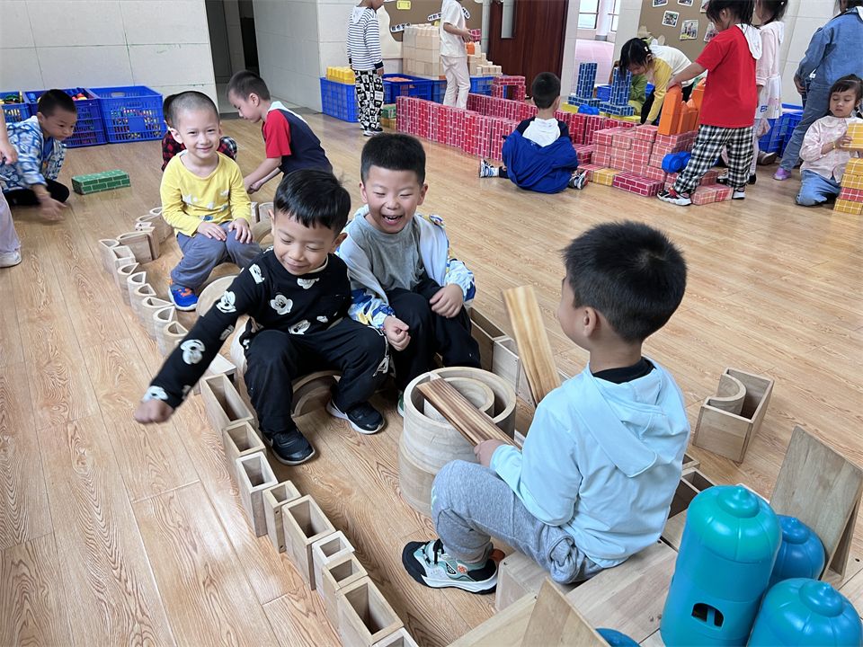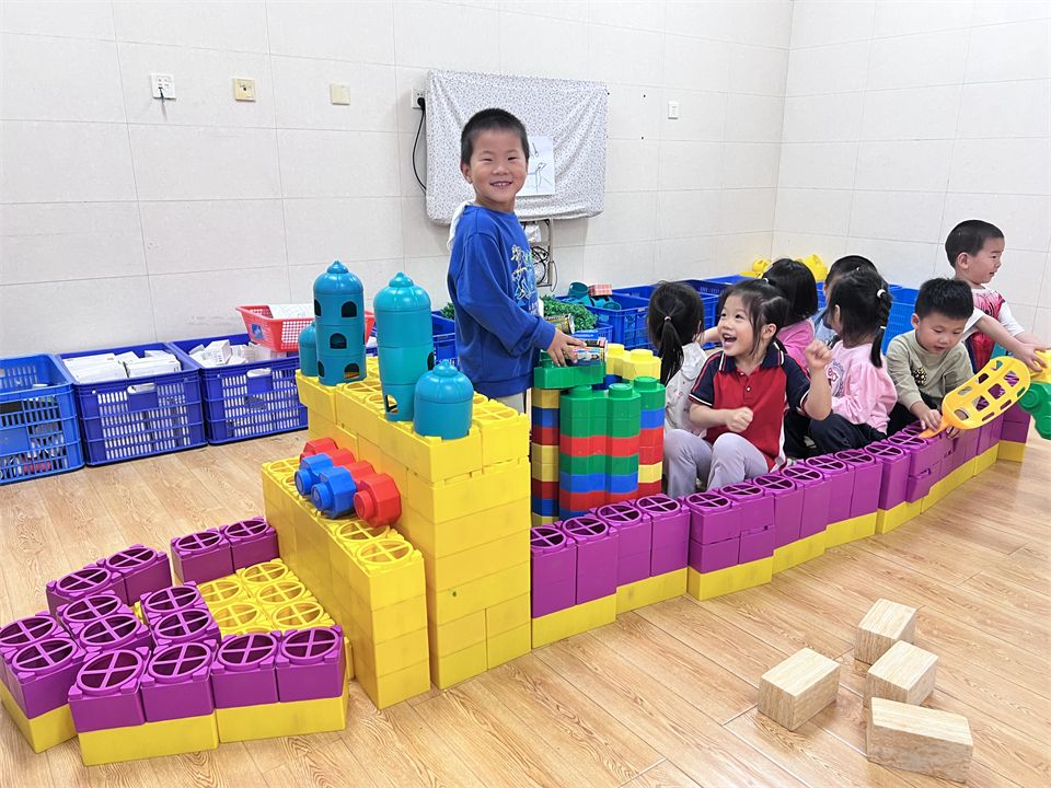 端午节来临之际,孩子利用不同建构材料搭建了属于他们战队的龙舟。比赛开始啦,一时间“赛场”上锣鼓声天,热闹非凡,听到锣鼓手响起整齐的口号声:“五月五,过端午,划龙舟,敲锣鼓,一二三四五六,你来划船我打鼓”。 一条条形态各异的“龙舟”在“赛道”穿梭着,加油声、锣鼓声、孩子们的笑声充满着整个园所。