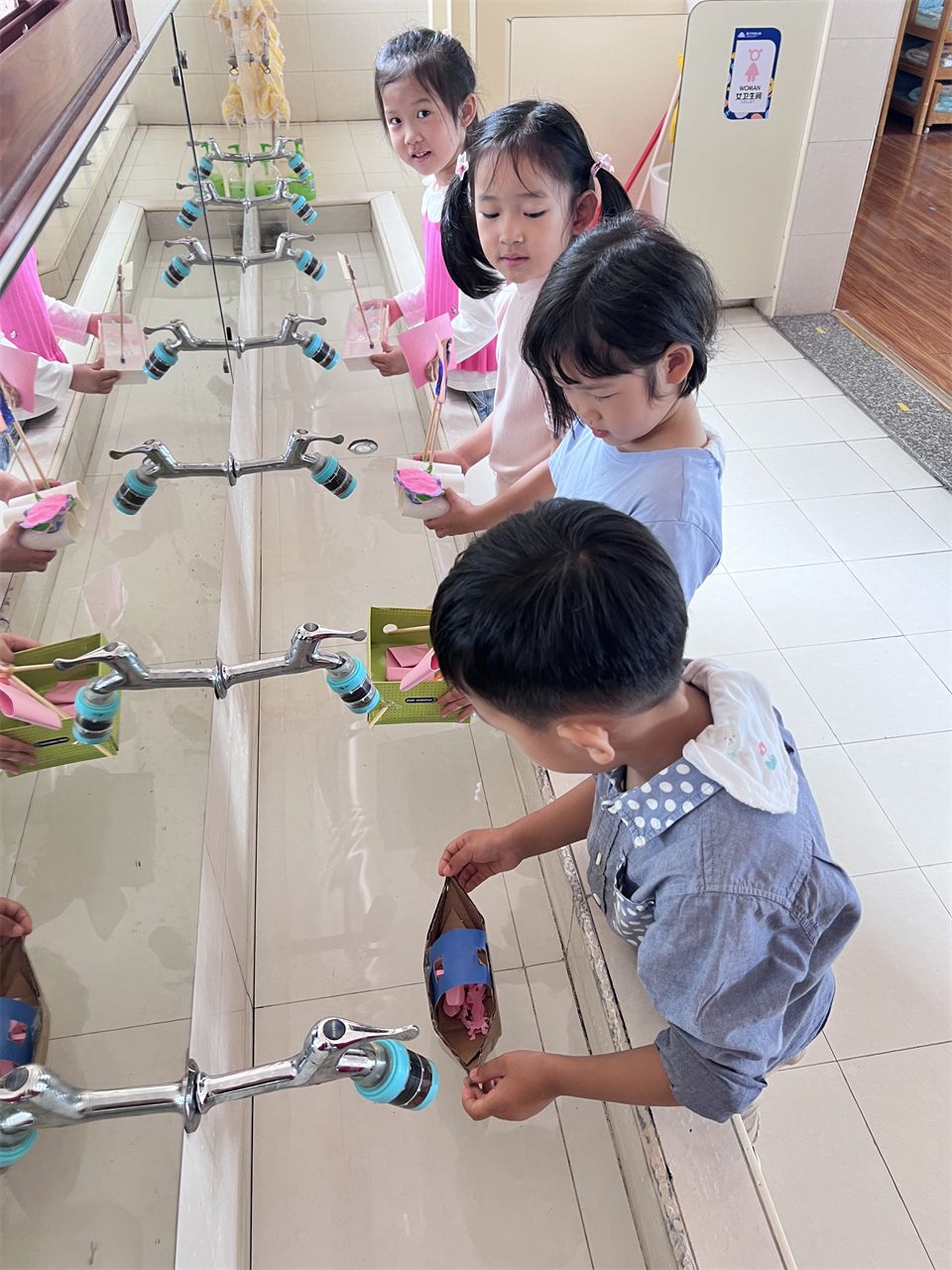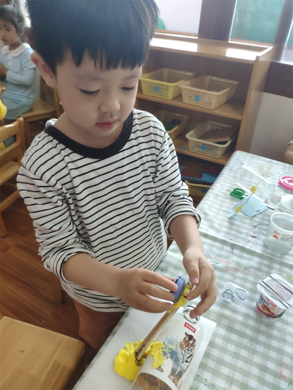 而后在不断深入学习中,孩子们还从家里找来了他们觉得可以造船的材料,进行试航前的最后冲刺。中一班小朋友们稚嫩的小手制作出了形形色色的小船,材料也是我们随处可见的废旧物品,组合成了一件件精巧的艺术品,孩子们爱不释手!