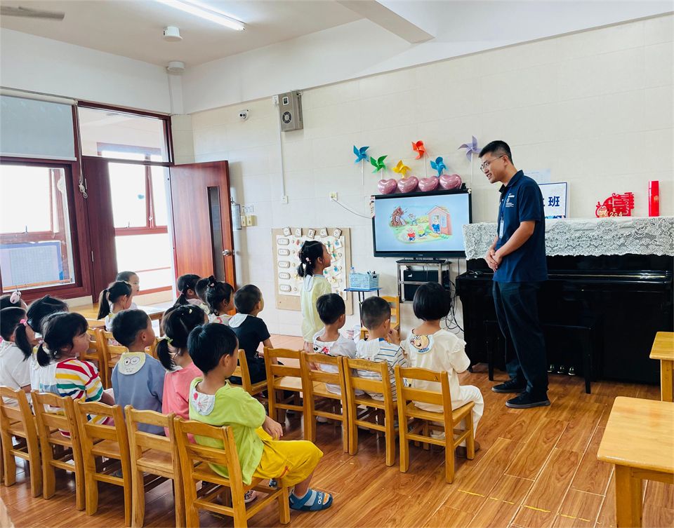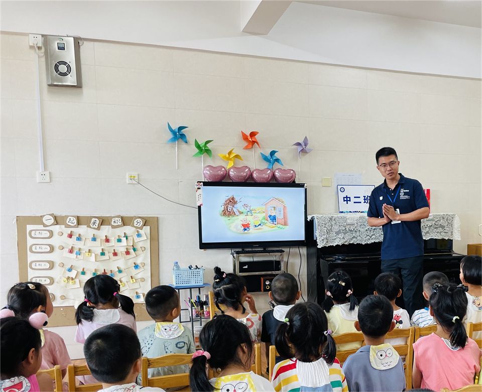“小朋友们知道盖房子需要什么吗?”君宝爸爸还带来了绘本《一起来盖房子》,带领小朋友了解房子的结构、房子的建筑过程、房子建筑需要的工具等。