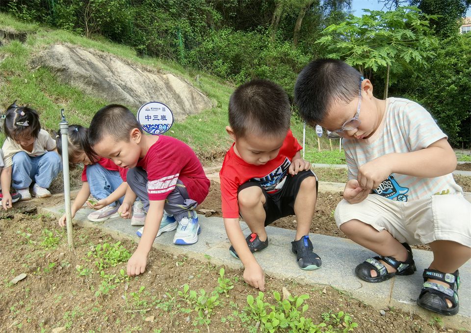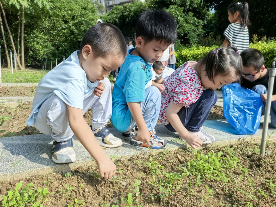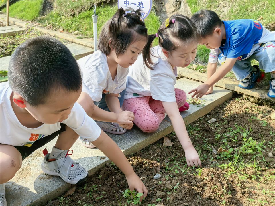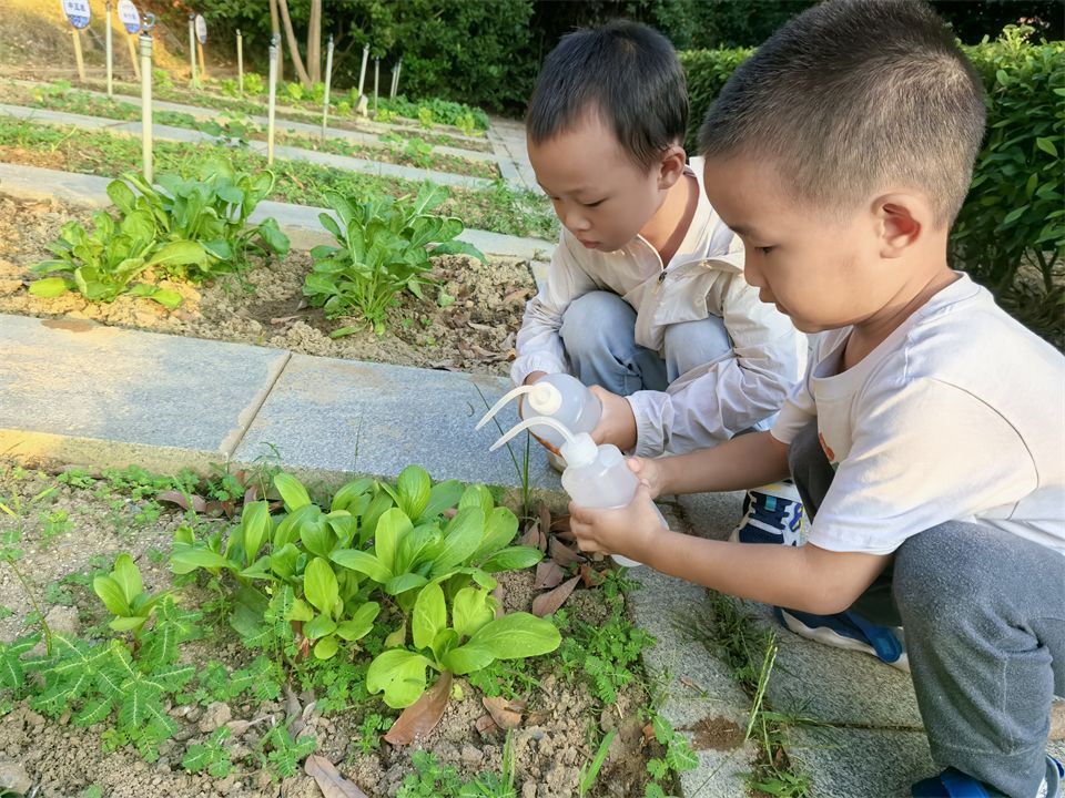 在菜地里,有一群勤快的“小蜜蜂”,有的浇水,有的拔草,快看啊,孩子们种下的青菜绿油油喽!