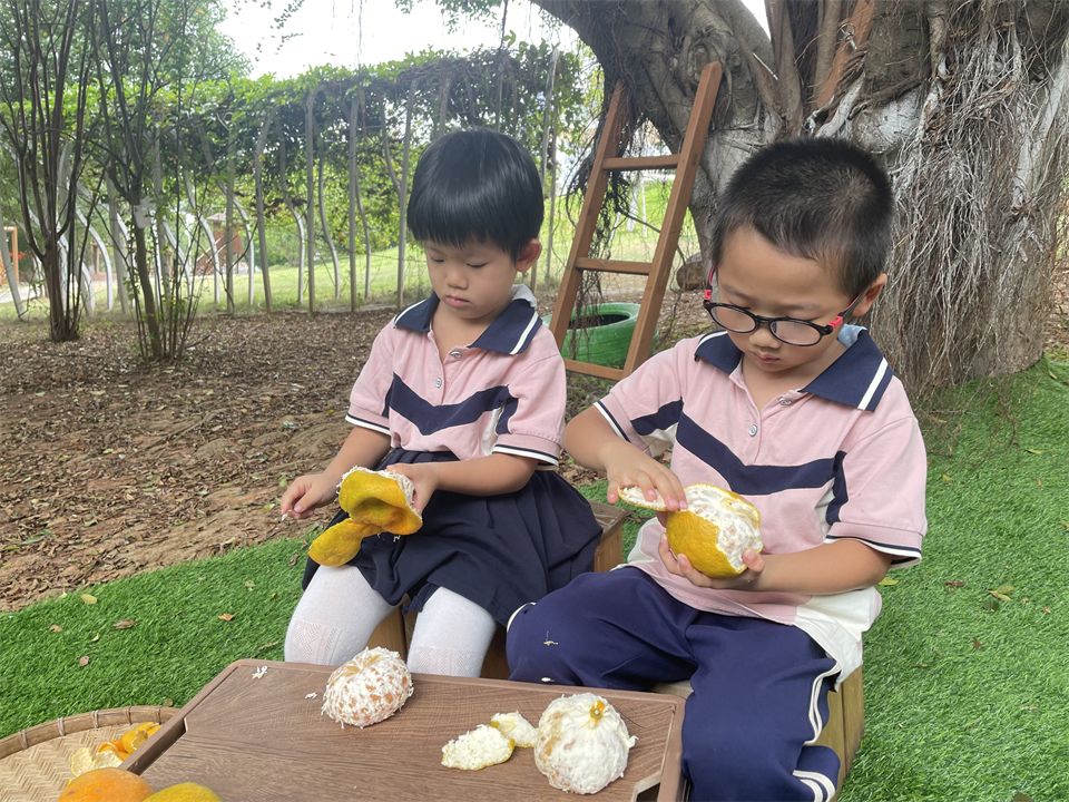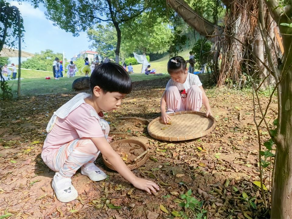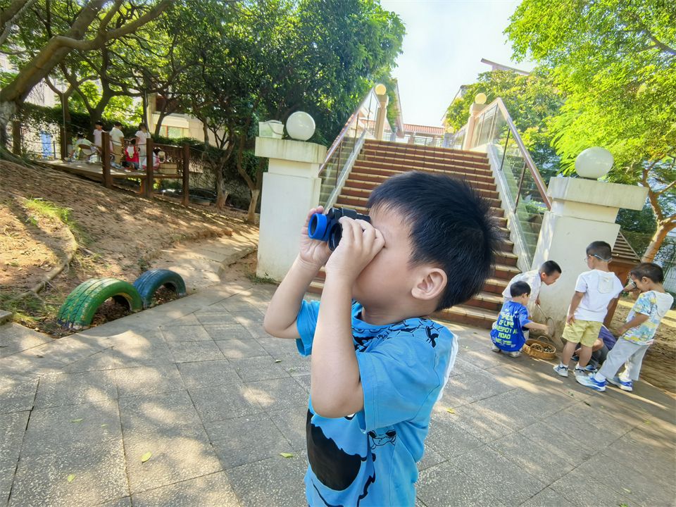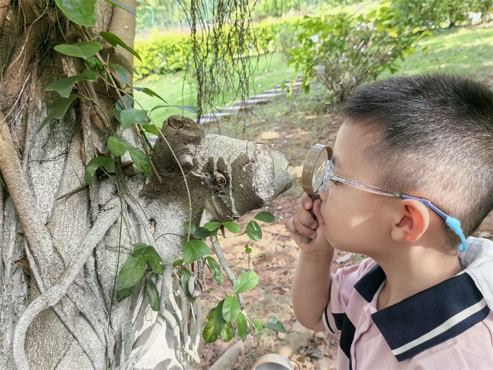 孩子们天生就有着强烈的好奇心,放大镜、望远镜、捕虫网都是孩子们贴近大自然最好的“伙伴”。捡拾飘落的秋叶:针形、圆形、扇形等,叶子们犹如一个个小精灵,冲进孩子们心里,激发探索的欲望。在草地上,悉悉索索的“自由踩踩”,感恩大自然馈赠的“秋日果实”。