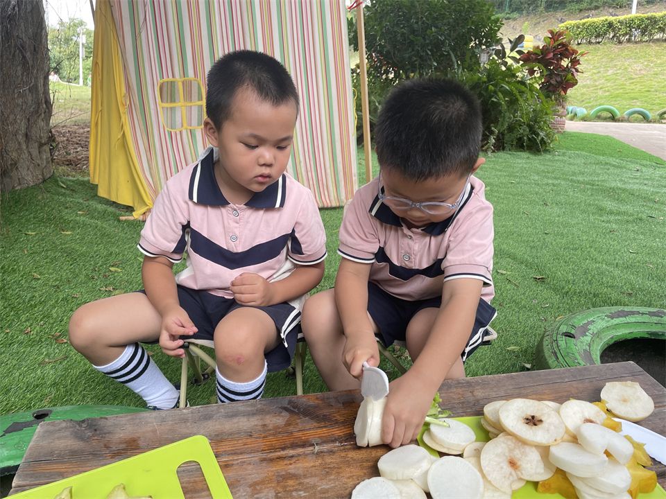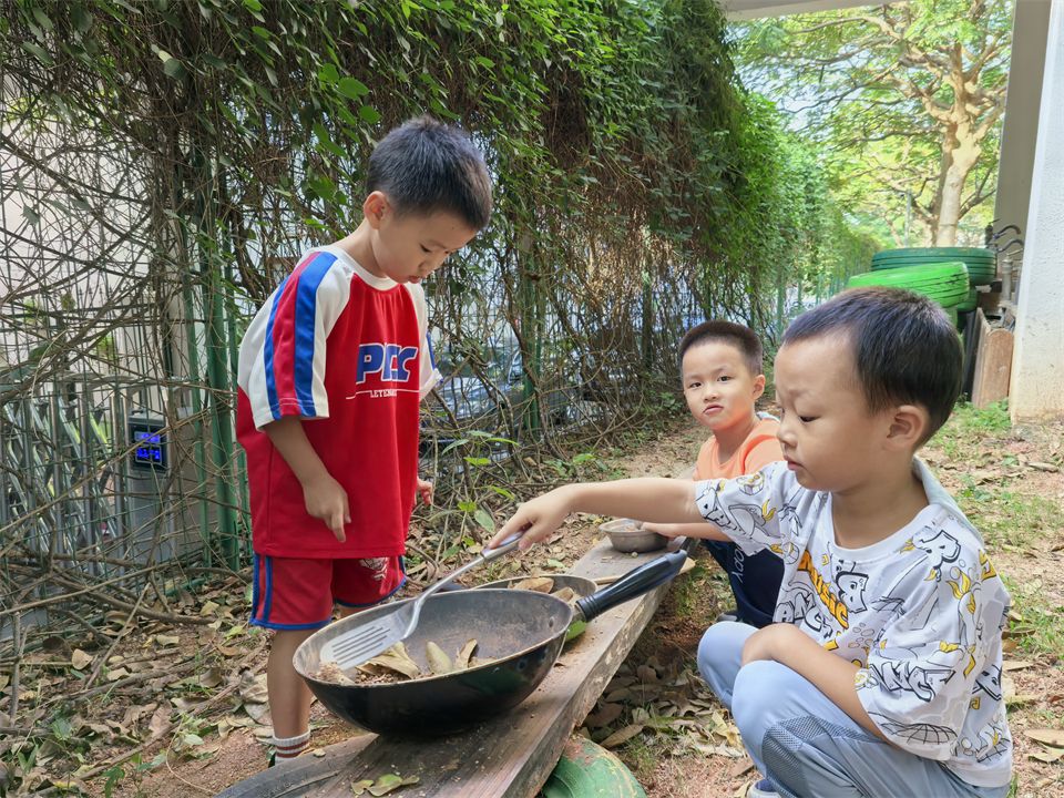 就地取材,变身快乐“小厨师”,串串、烧烤、炒菜、享受美食……孩子们沉浸在每一个“自然游戏”之中。
