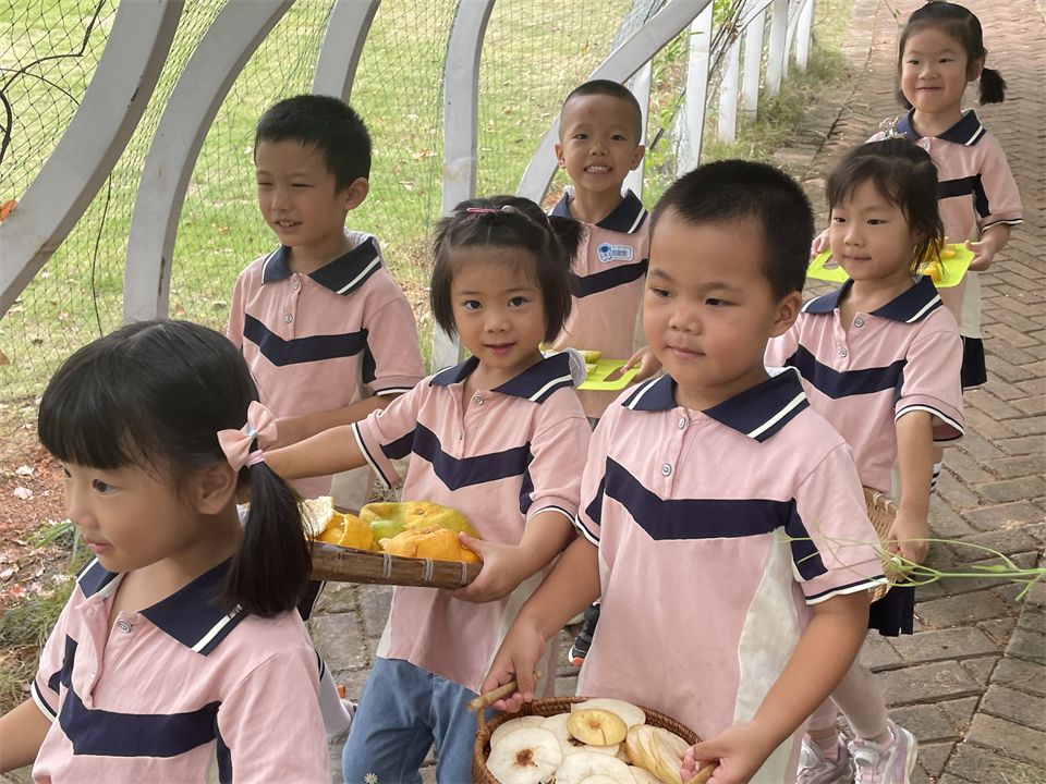 晒秋啦!一起收集秋天的板栗、水果洗一洗、切一切、晾晒起来……孩子们晒秋的美景编织成一幅色彩斑斓的画卷,幼儿园的小山坡处处洋溢着喜悦的笑脸,真是一场关于秋的视觉盛宴。