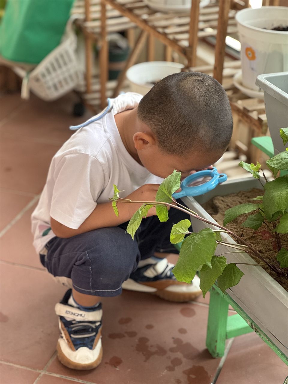 瞧!小小的一个角落拓展了萌娃们的新视野。看一看、摸一摸、浇一浇,好似在感受秋天的温暖和丰富。