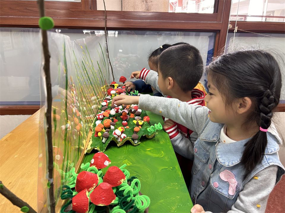 来园后、离园前,餐点的过渡环节,“菌菇基地”都能见到幼儿驻足观看的身影,他们对自己做出来的菌菇展示出了极大的兴趣。期待随着孩子们的进一步探索,我们的“寻找菌菇”之旅会越来越精彩。