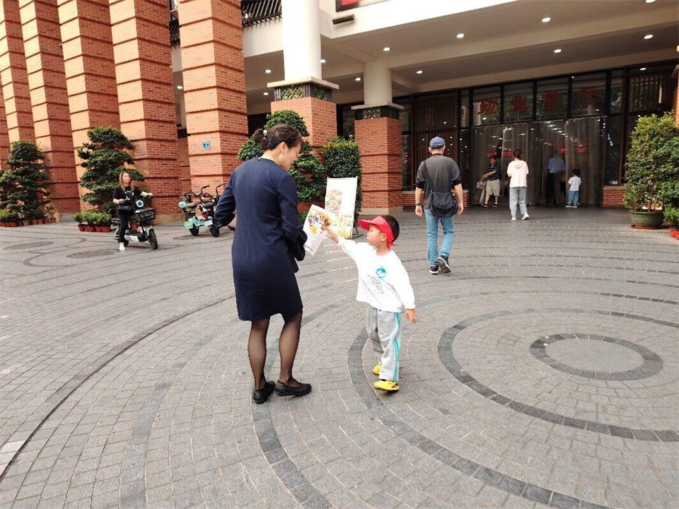 勤业餐厅、夏商平台,到处都有小红帽介绍读书节倡议书的小身影。