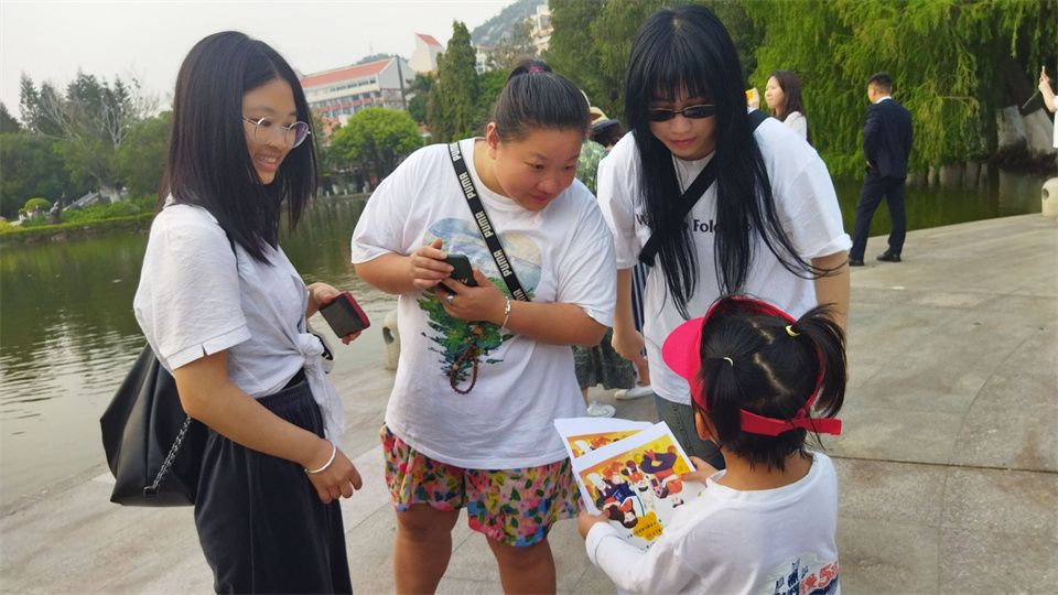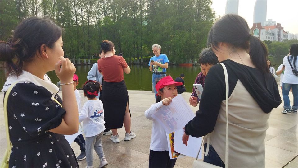美丽的芙蓉湖畔,我们向游客介绍倡议书,得到了热烈的响应。