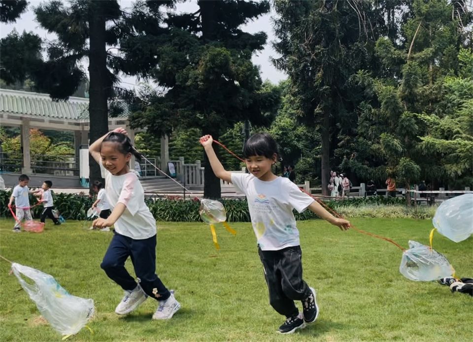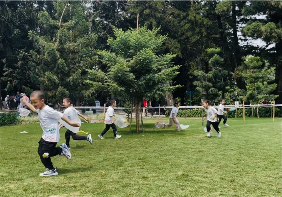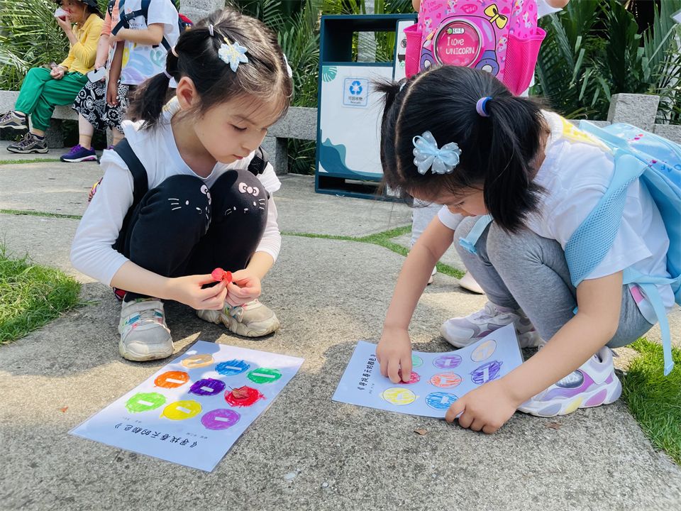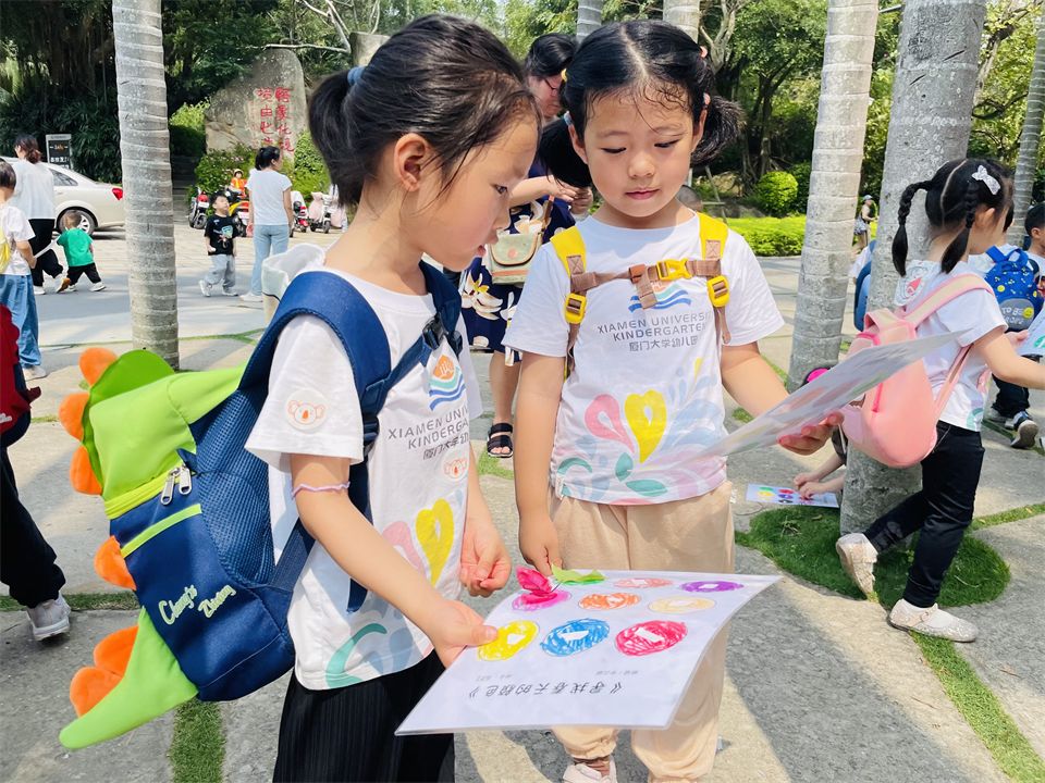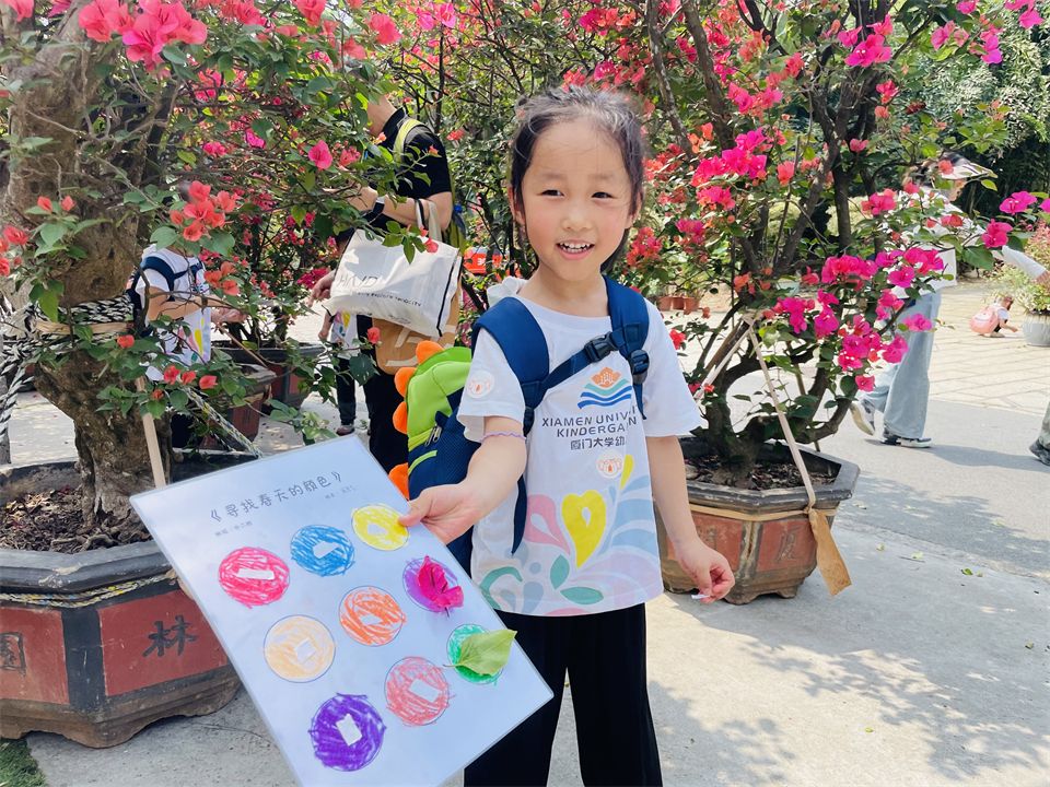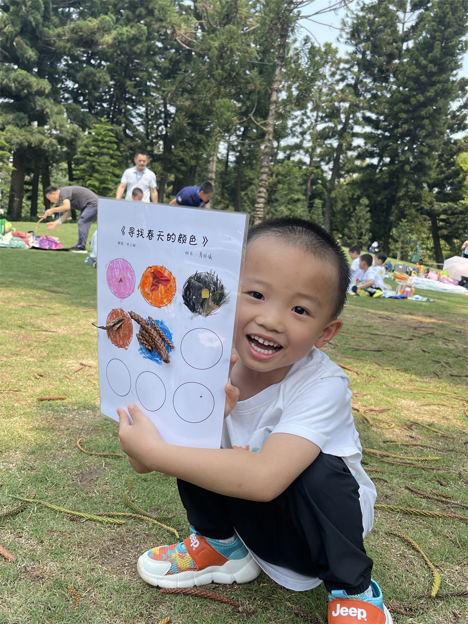 植物园里好漂亮啊,让我们化身植物观察员,一起寻找植物的秘密,发现大自然的美丽吧!“我找到了和我猜想颜色一样的花朵和树叶啦!”“我集齐啦,打卡成功!”春风中我们一起奔跑吧,各种自制风筝在孩子的欢声笑语中飞了起来。