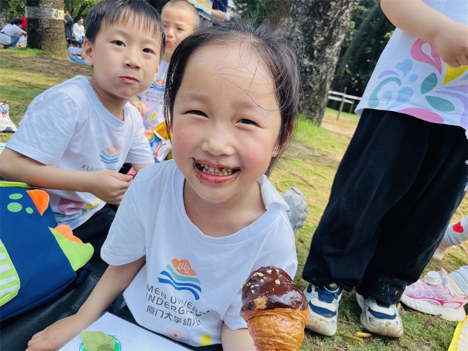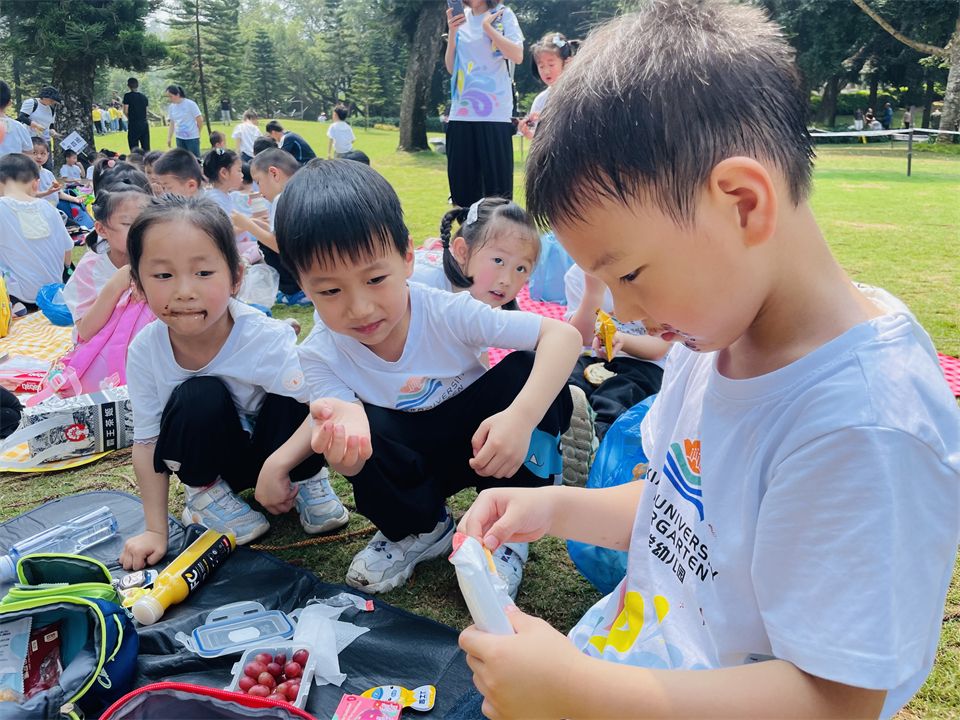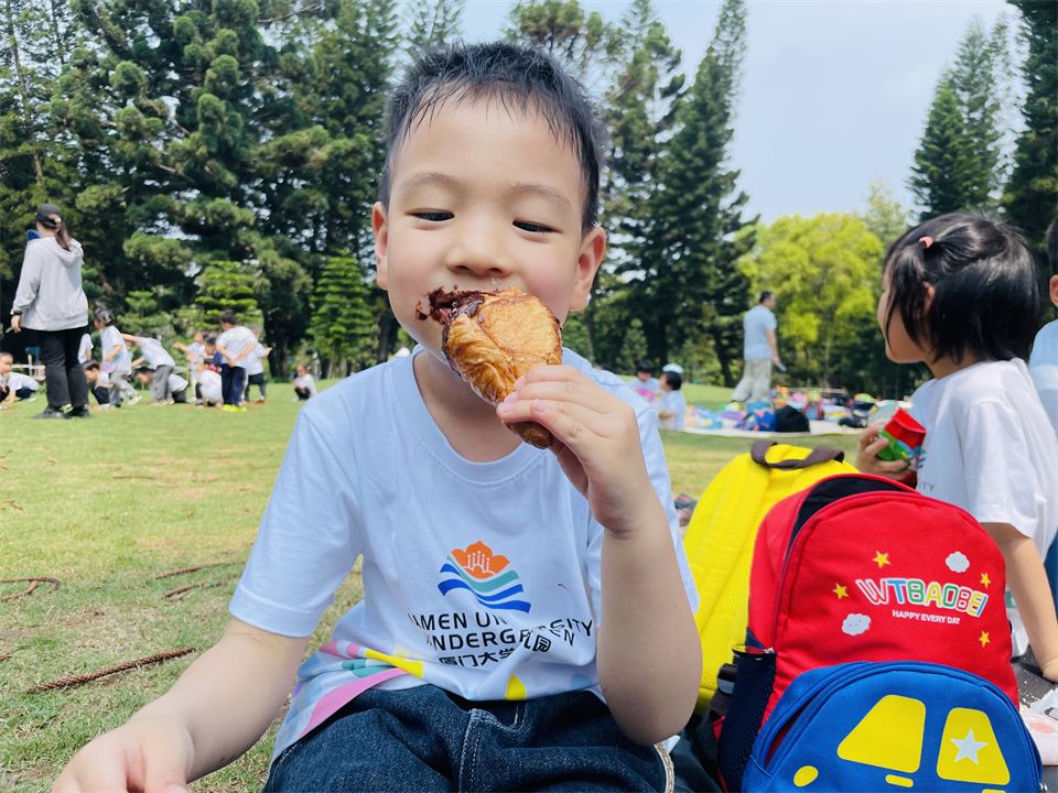 春天有花草的清香,有泥土的芬芳。当然,还有分享美食的甜蜜味道。孩子们三三两两坐在一起,与同伴一起看美景品美食好不惬意。