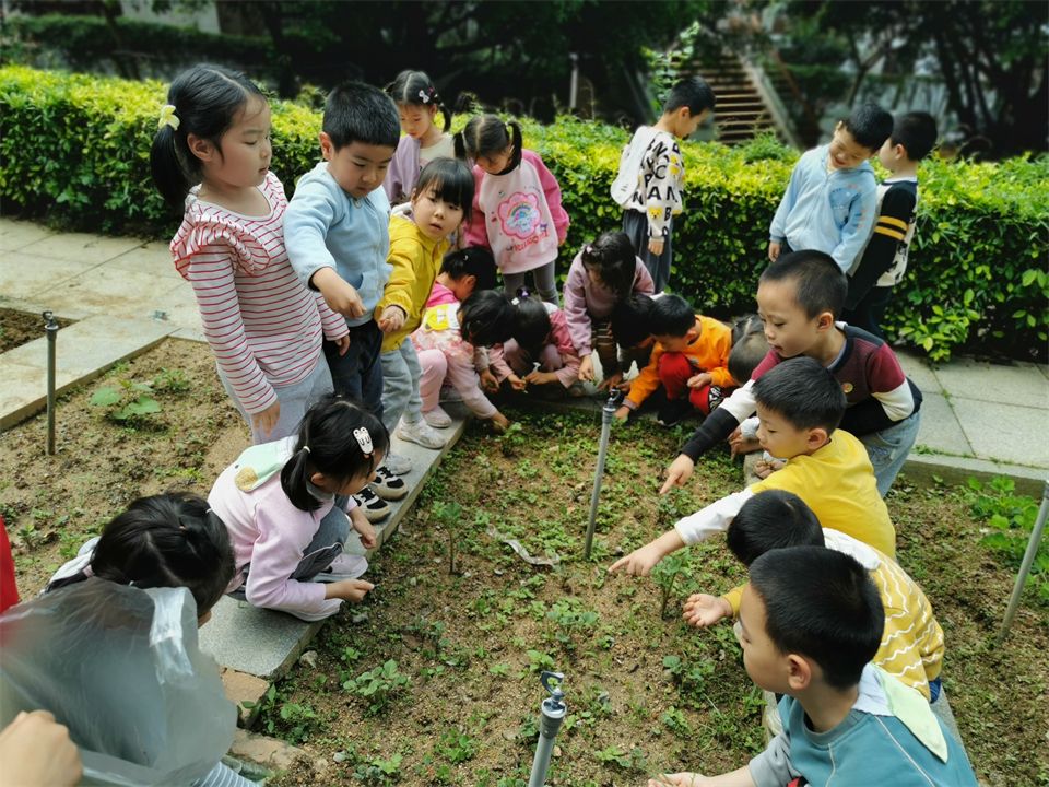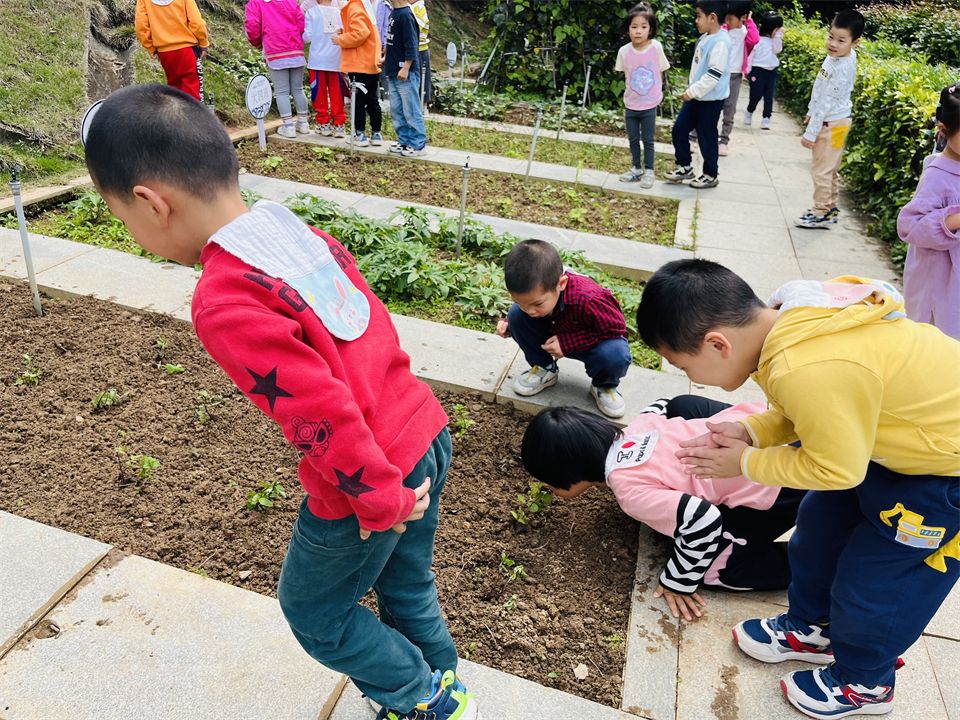 在幼儿园的小山坡上,菜地得到了春雨的滋润后,植物们吸收了充足的水分和营养,自然生长得非常茂盛,小朋友们时不时地来菜地看望土豆成长的情况,发现土豆苗长出来啦!大家都十分兴奋。