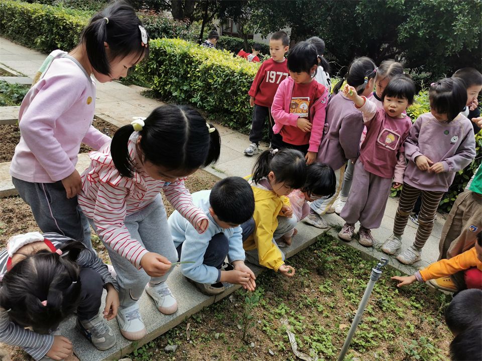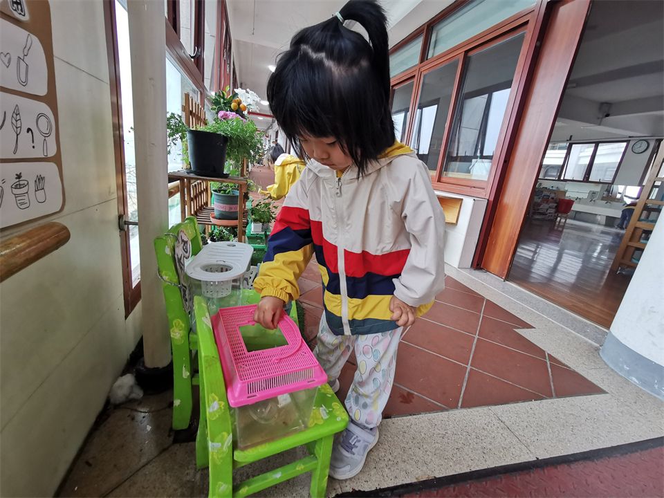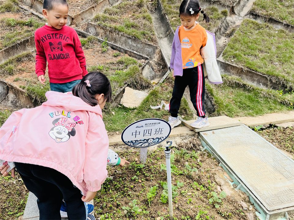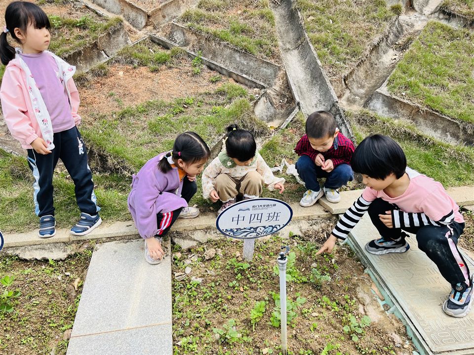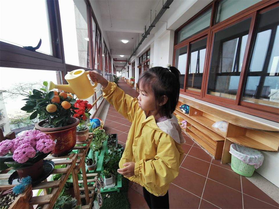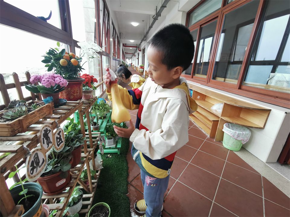 在厦大幼儿园不仅有山坡和菜地,在班级还有植物角,中四班的植物角在小朋友们的照顾下生机勃勃。每天都有值日生参与浇水、除草等植物护理活动,给小乌龟喂食等,培养了孩子们的动手能力和责任感。