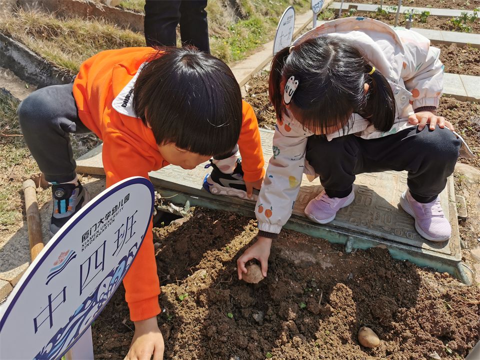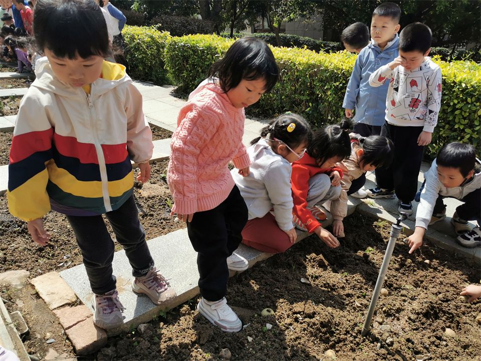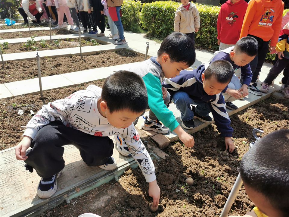 春天是大自然复苏的季节,万物开始生长,是非常适合播种的时间。中四班的小朋友在老师的带领来到菜地,一起动动小手将杂草清理干净,挖好小洞,将提前发好芽的土豆放进洞里,轻轻盖上泥土,最后浇水,静静等待土豆苗苗长出来。