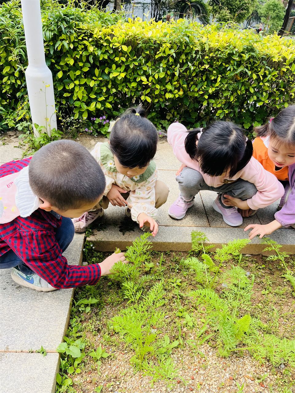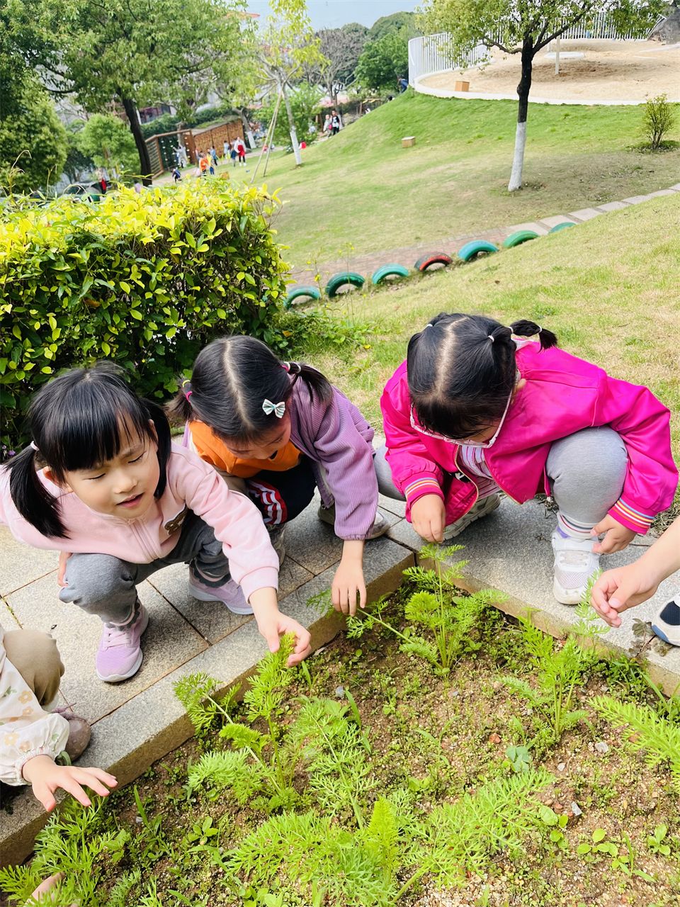 对于幼儿园的小朋友们来说,看到自己种植的植物茁壮成长,无疑是一件令人兴奋和开心的事情。在菜地还认识了很多新的植物,有地瓜叶、生菜、胡萝卜叶、薄荷等等。小朋友们可以通过观察和参与植物的生长过程,这样的实践活动不仅能增加他们对自然环境的了解和兴趣,还能培养他们的观察力、耐心和责任感。