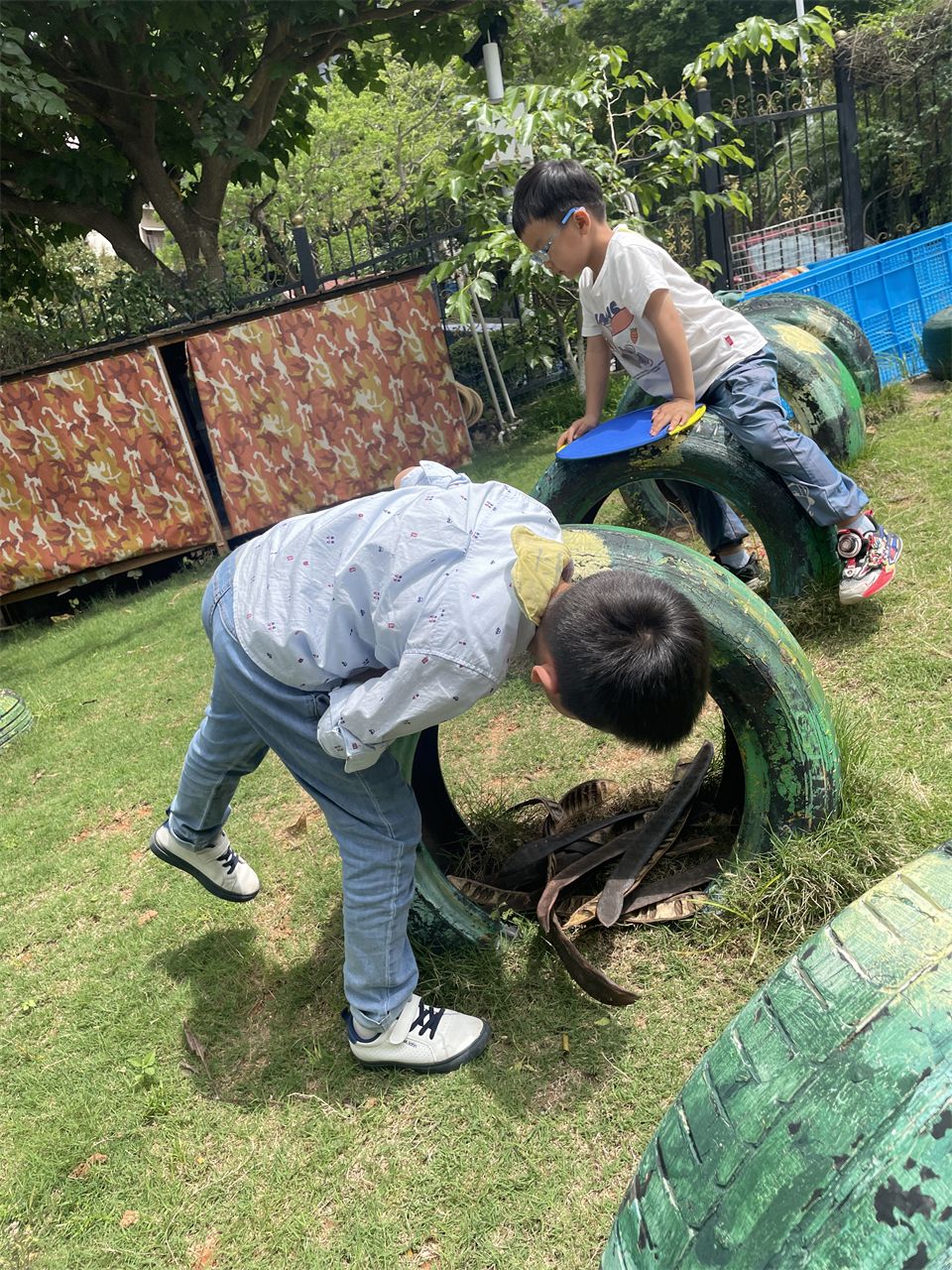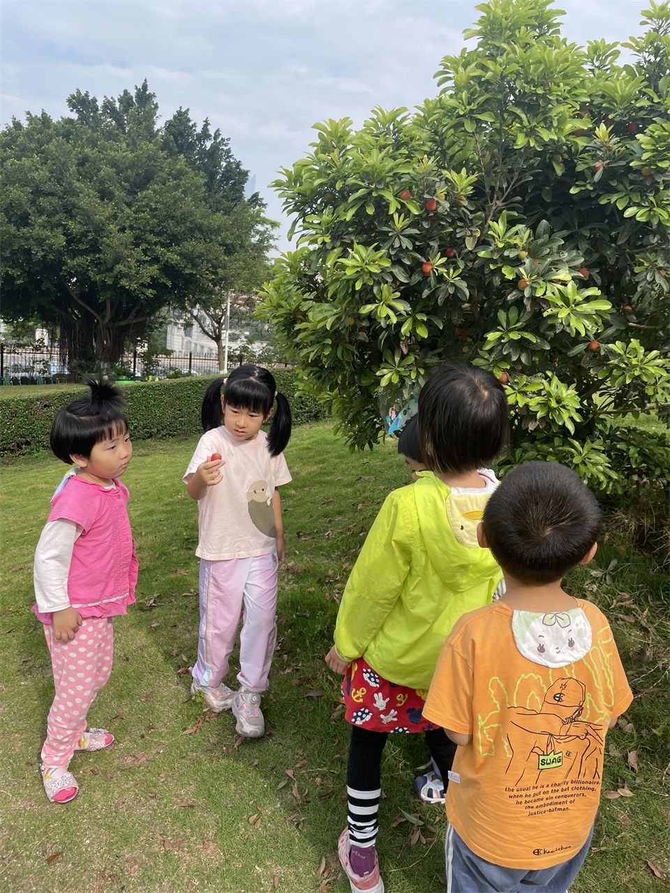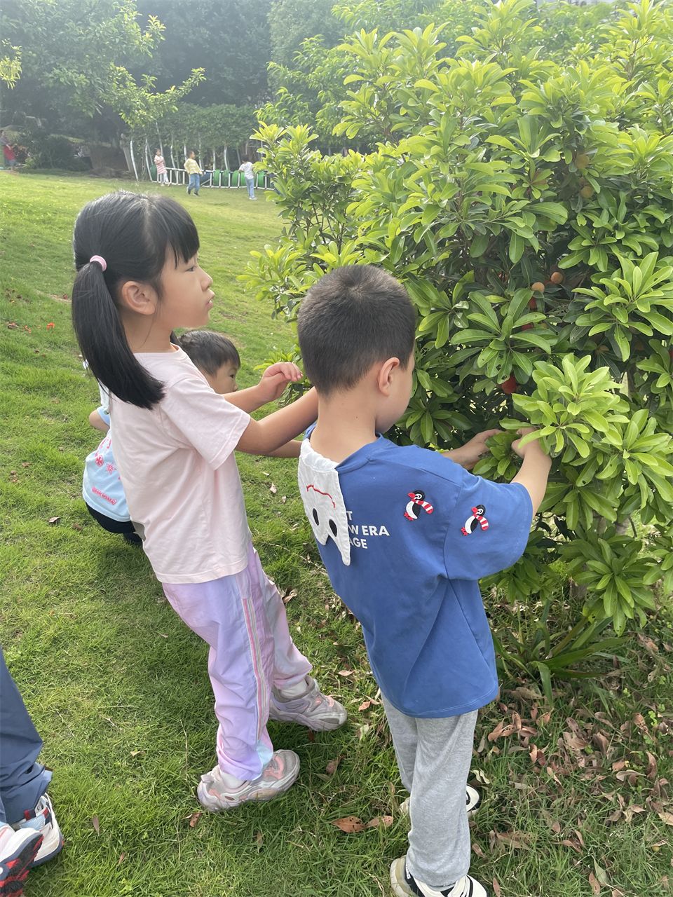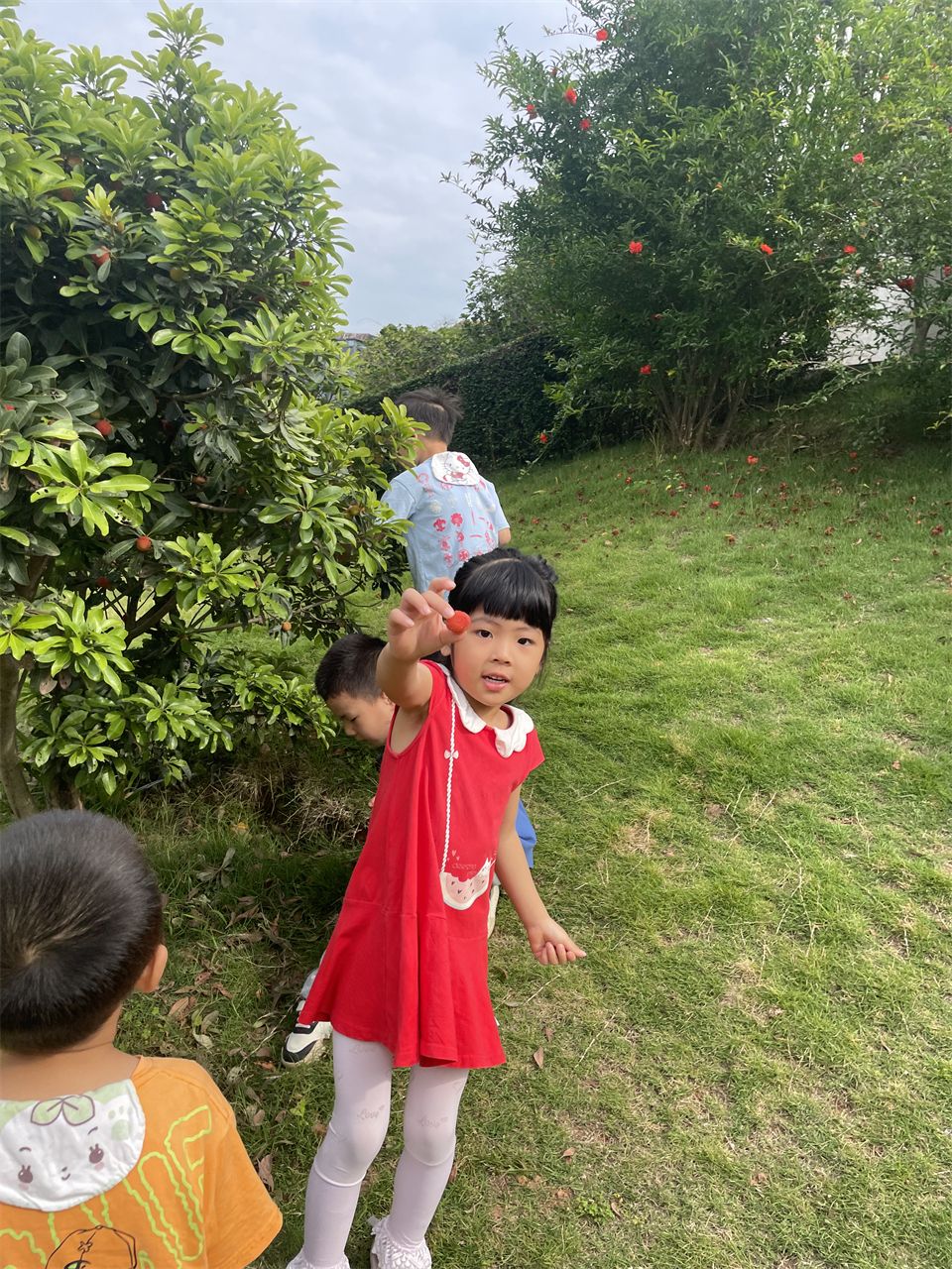 在山坡上,孩子们还进行了一系列户外活动。他们奔跑着、欢笑着,尽情释放着童年的活力。偶然间,孩子们发现草地上散落着一些凤凰树的豆荚。这些豆荚形状奇特,有的孩子说它们像一把刀,纷纷比划着动作,玩得不亦乐乎。这种发现让孩子们对自然世界充满了好奇和探索的欲望,他们纷纷捡起地上的豆荚,仔细观察、讨论,享受着探索的乐趣。