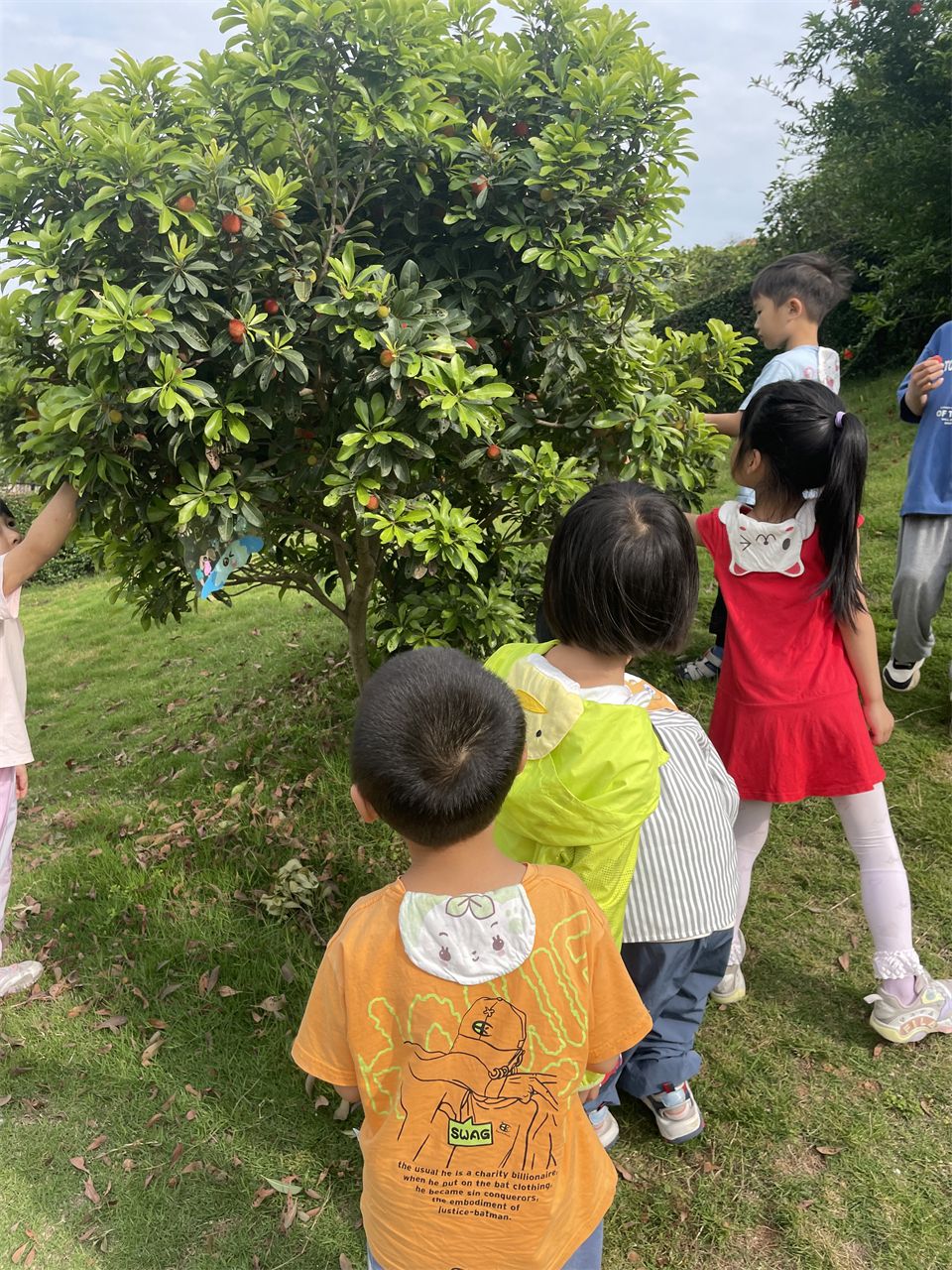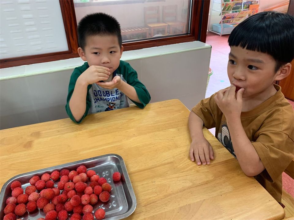 老师带领孩子们来到山坡,他们惊喜地发现杨梅树上挂满了成熟的杨梅。孩子们兴奋地围在树下,小心翼翼地采摘着杨梅,品尝着这份来自大自然的馈赠。他们一边吃着酸甜可口的杨梅,一边分享着彼此的喜悦和发现,快乐的笑声此起彼伏。