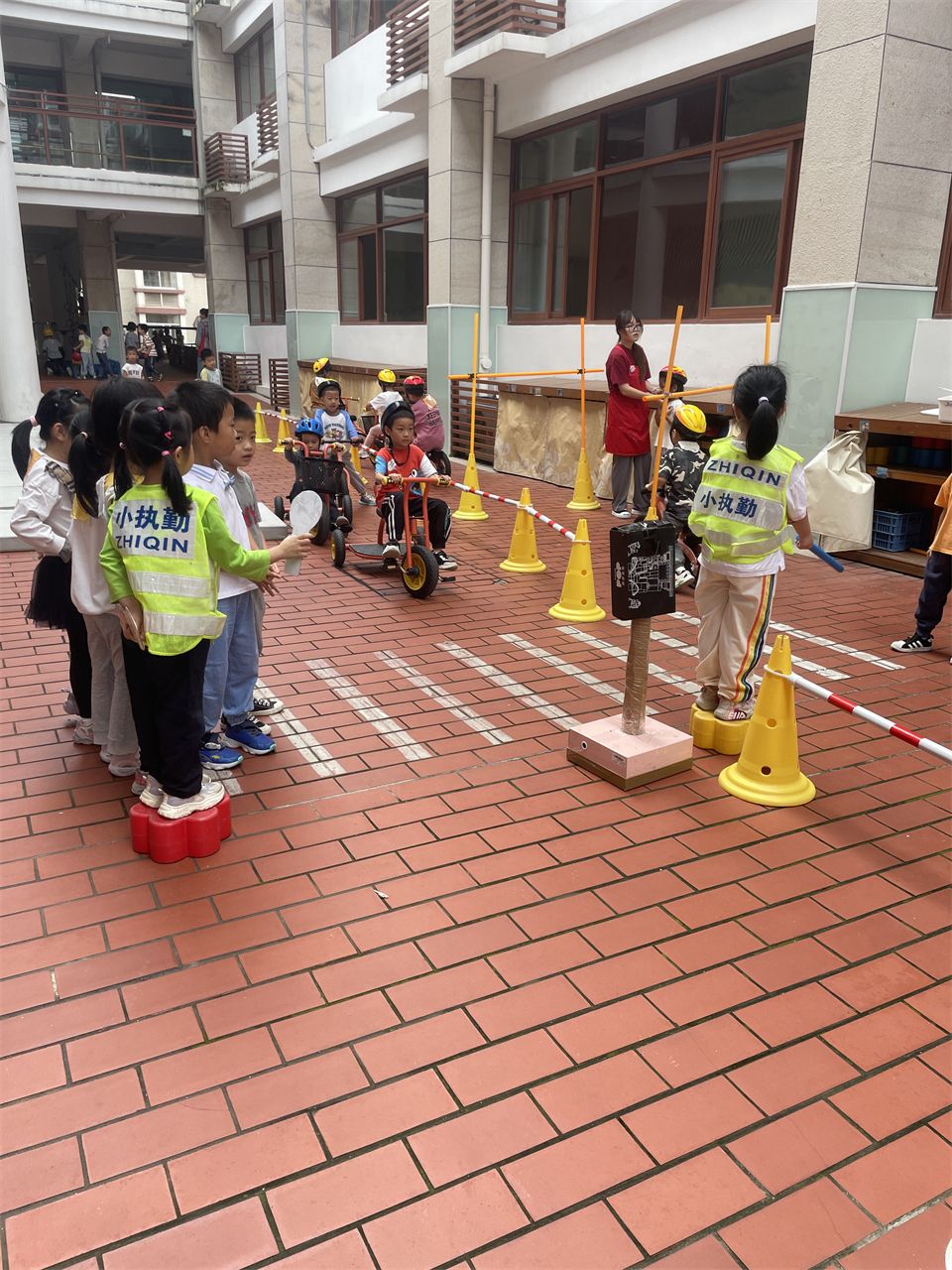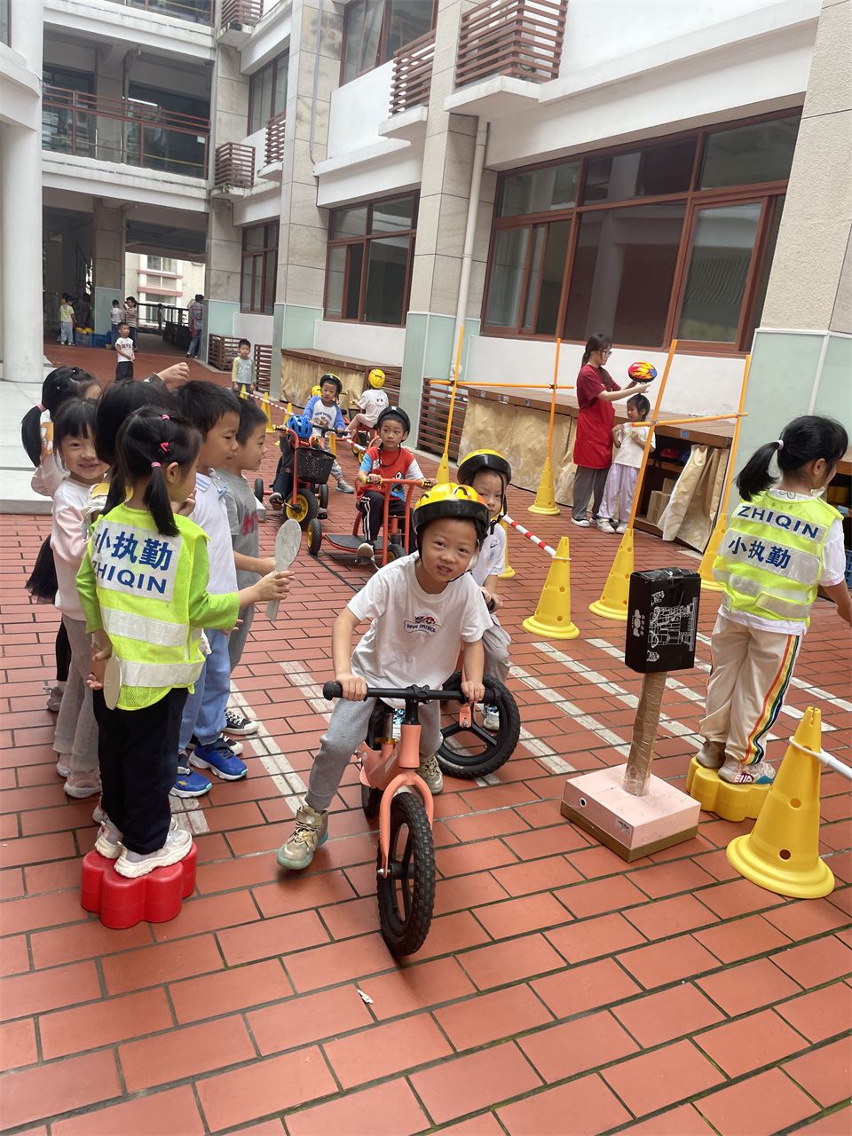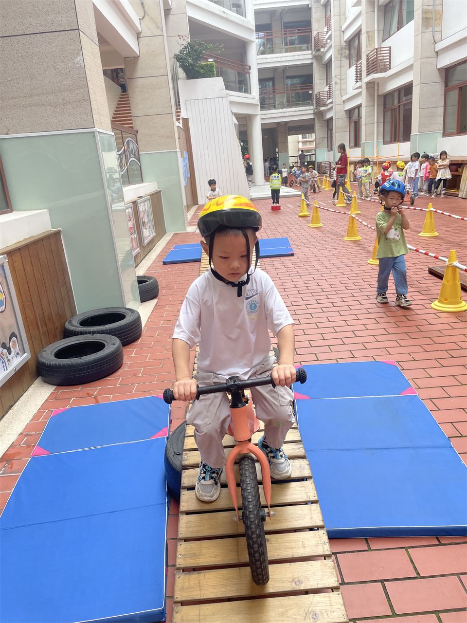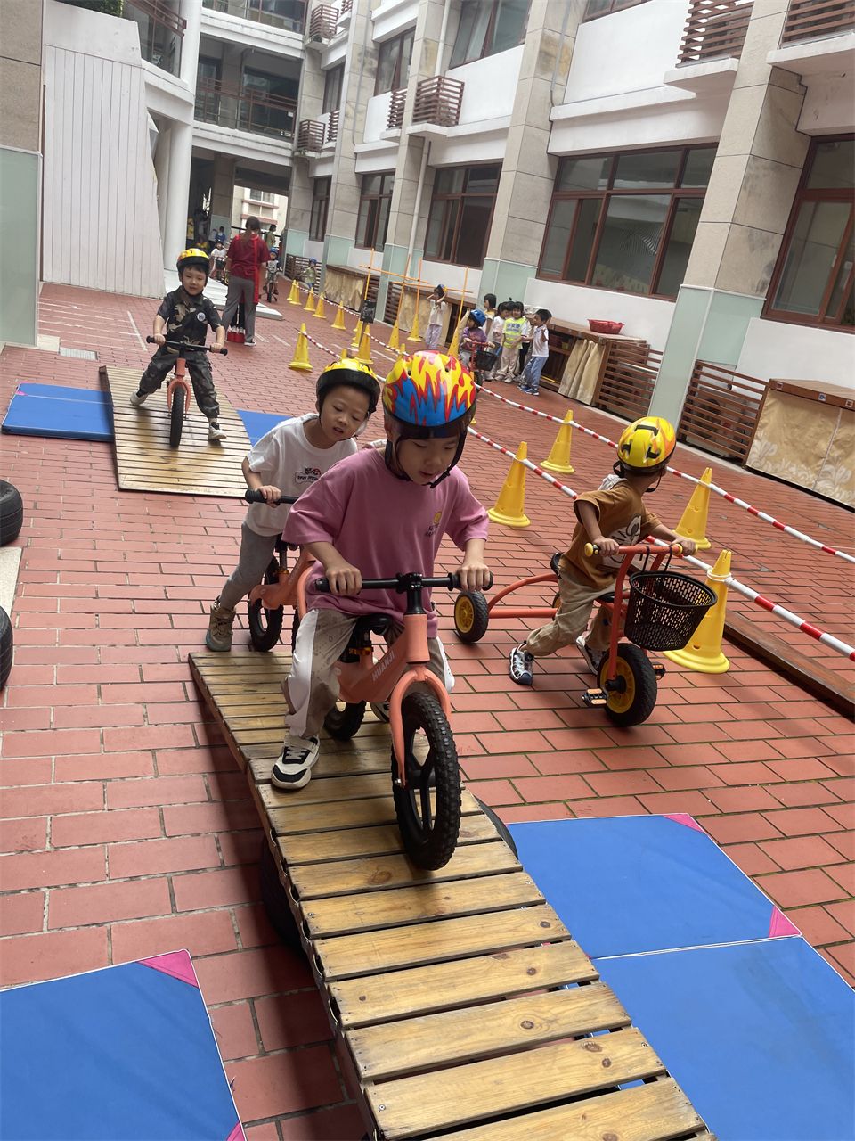 中庭的骑行区同样热闹非凡。孩子们骑着平稳车、三轮车在宽敞的场地上自由驰骋。他们或并排前行、或你追我赶,尽情享受着运动的快乐。在这里,孩子们不仅锻炼了身体,还学会了遵守交通规则、保持平衡等生活技能。