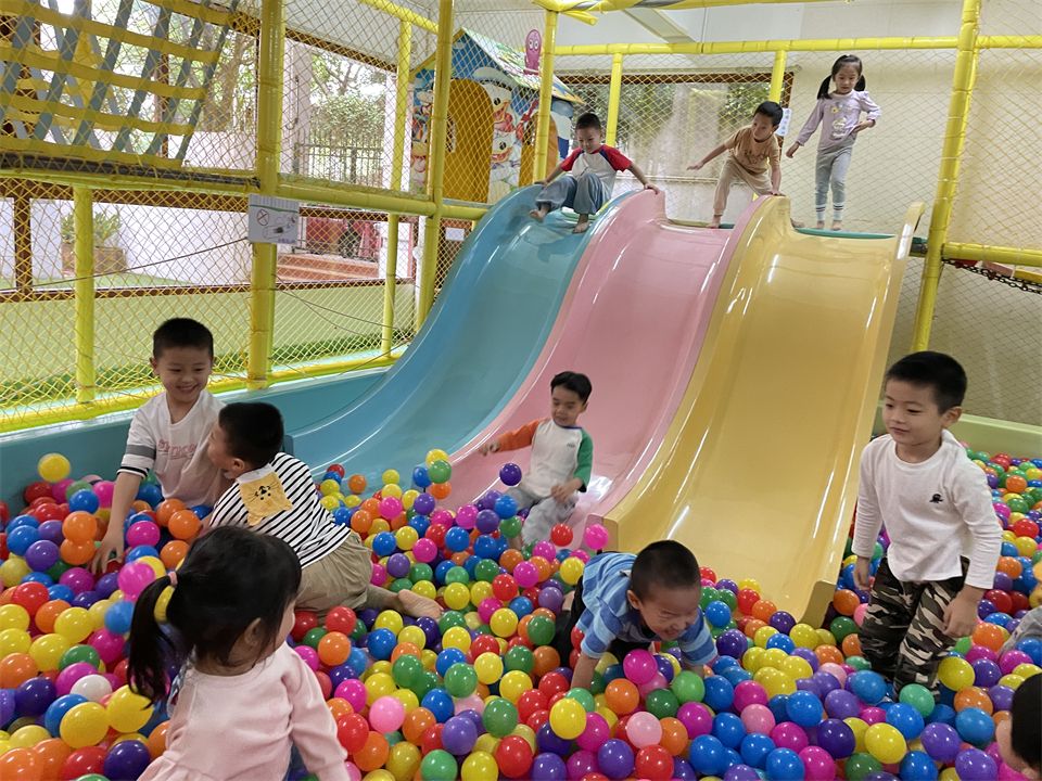 在淘气堡里,孩子们仿佛进入了一个五彩斑斓的梦幻世界。他们穿梭于各种充满想象力的游乐设施之间,时而爬上高高的滑梯,时而钻进神秘的小屋,尽情释放着内心的童真与快乐。