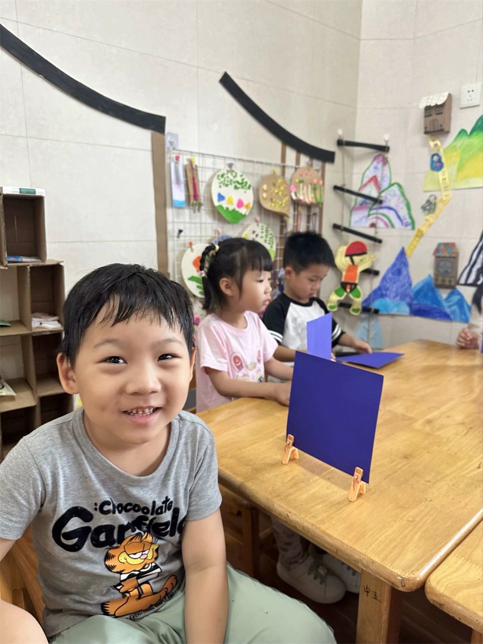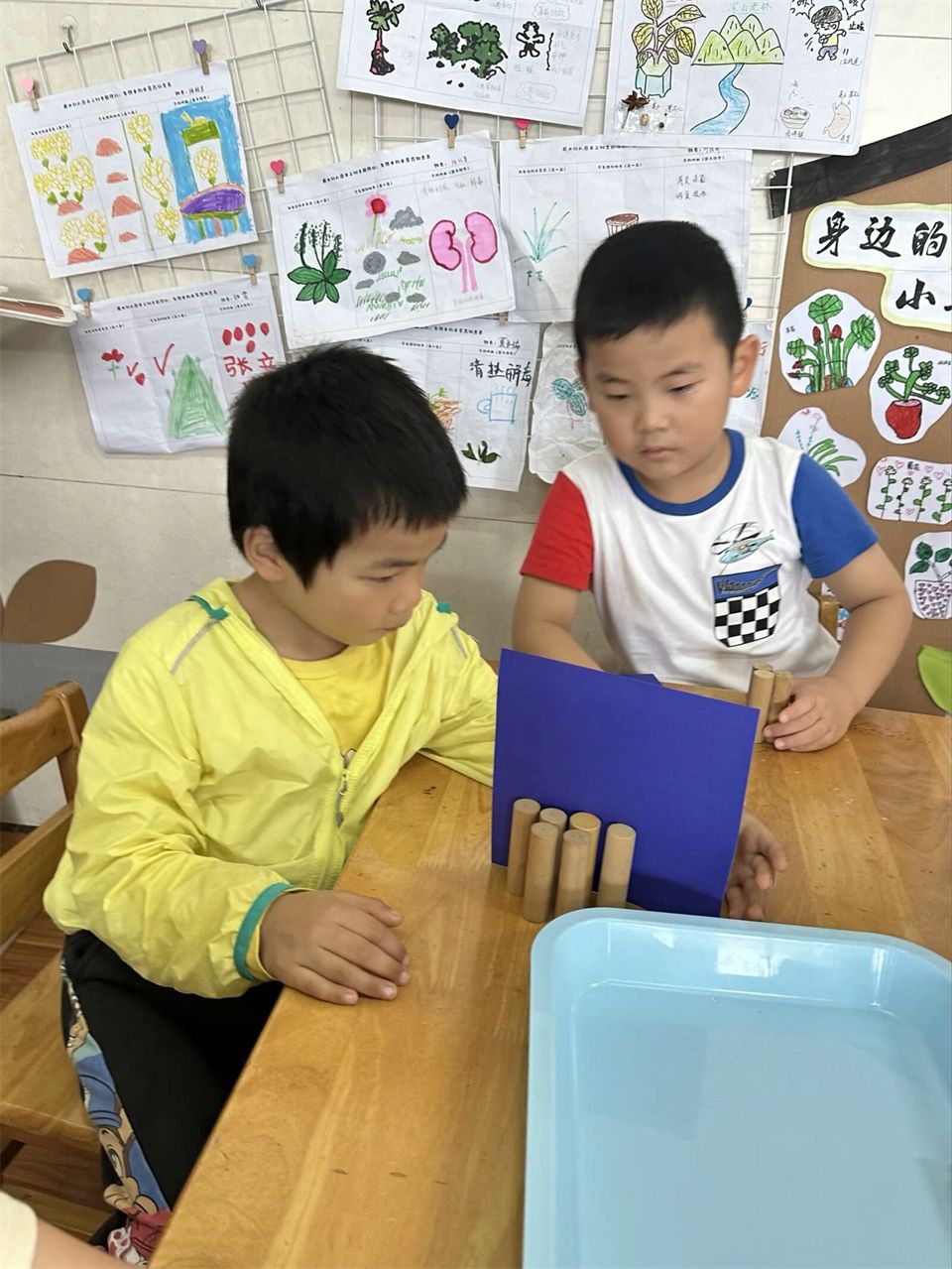 在科学探索的时光里,宝贝们参与了让纸张立起来的科学小实
