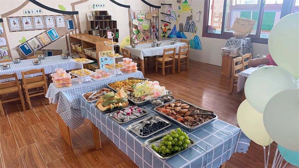 在热情似火的6月,宝贝们的幼儿园生活丰富多彩,充满了无尽的欢乐和惊喜。首先是欢乐自助餐活动,琳琅满目的美食摆满了餐桌,有美味的炸物、精致的小蛋糕、新鲜的水果等等。宝贝们兴奋地挑选着自己喜爱的食物,享受着自主选择的快乐,脸上洋溢着满足的笑容。