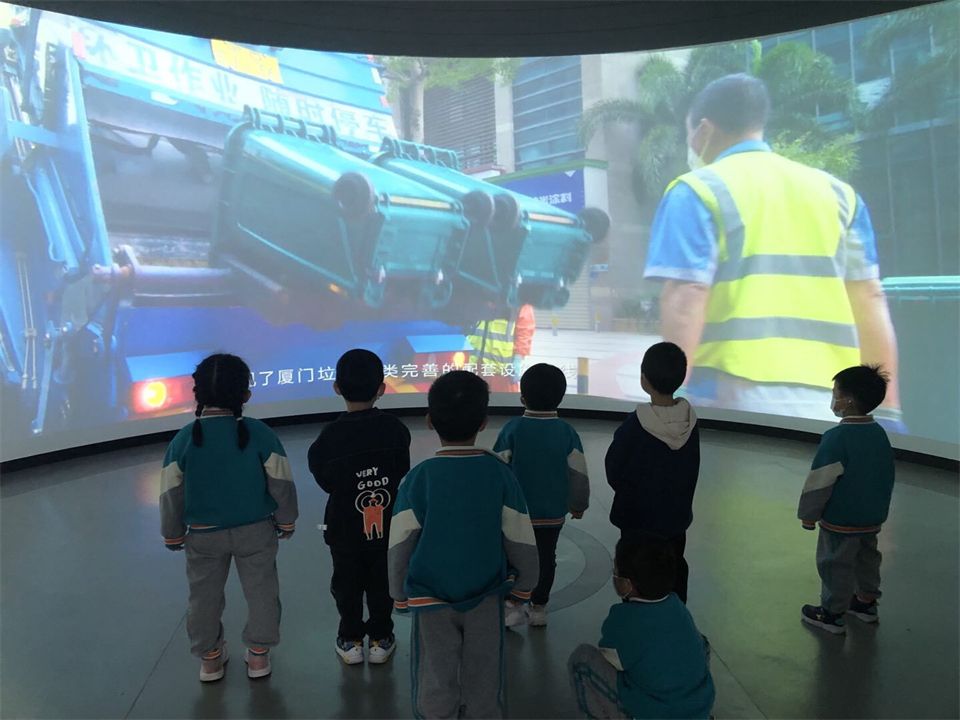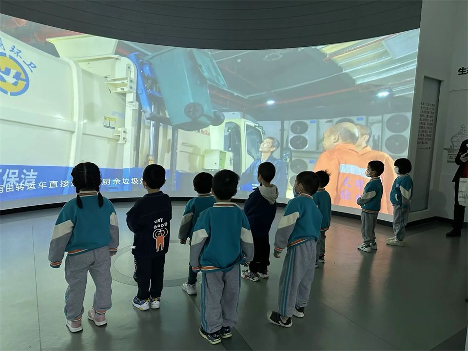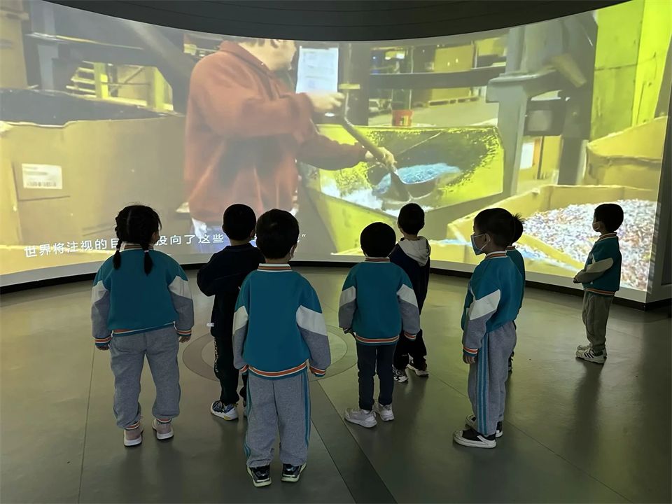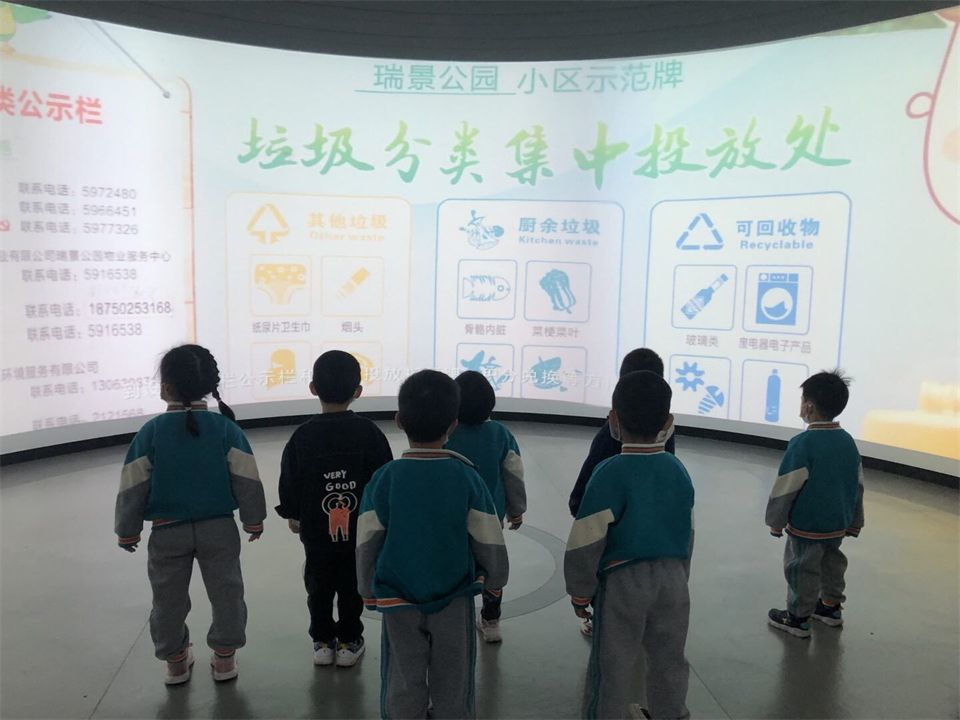 在研学老师的带领下,我们从大屏幕上认识到了垃圾分类的重要性及过程。