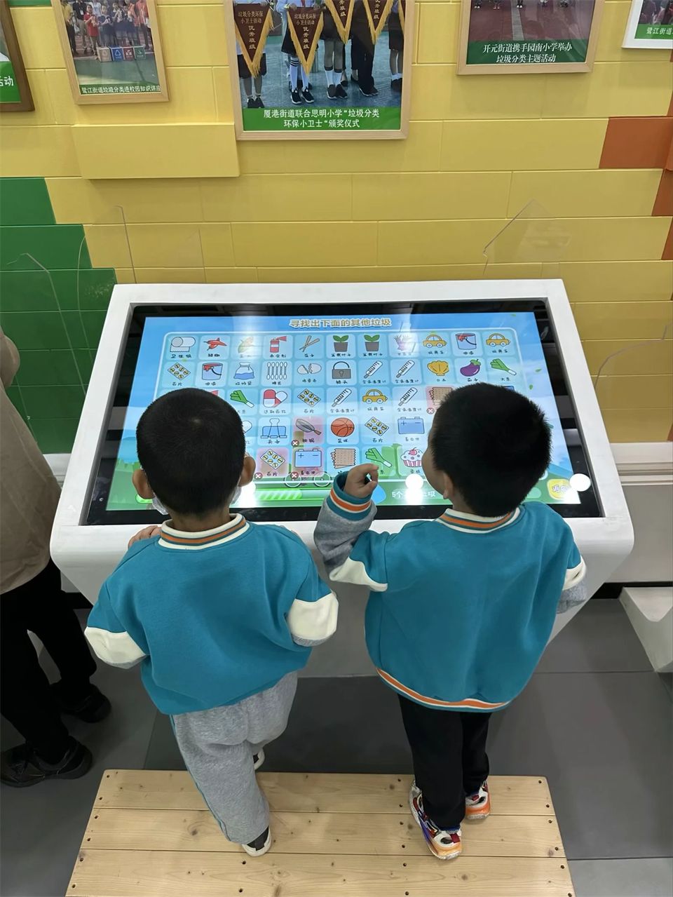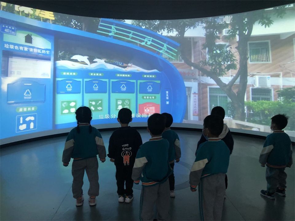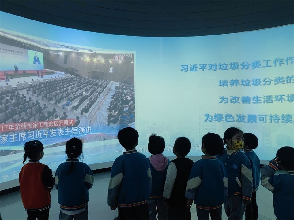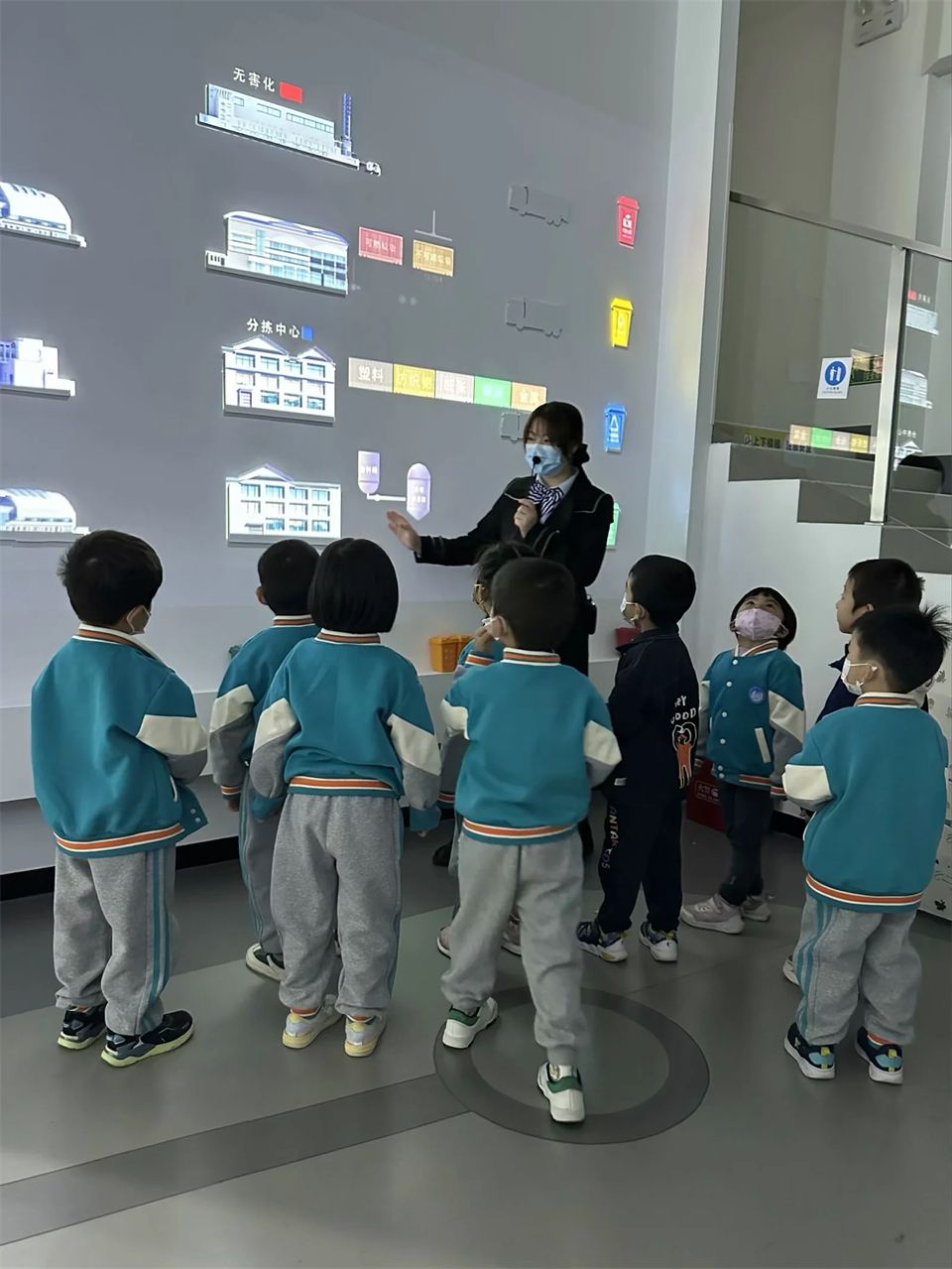 在研学老师的带领下,我们从大屏幕上认识到了垃圾分类的重要性及过程。
