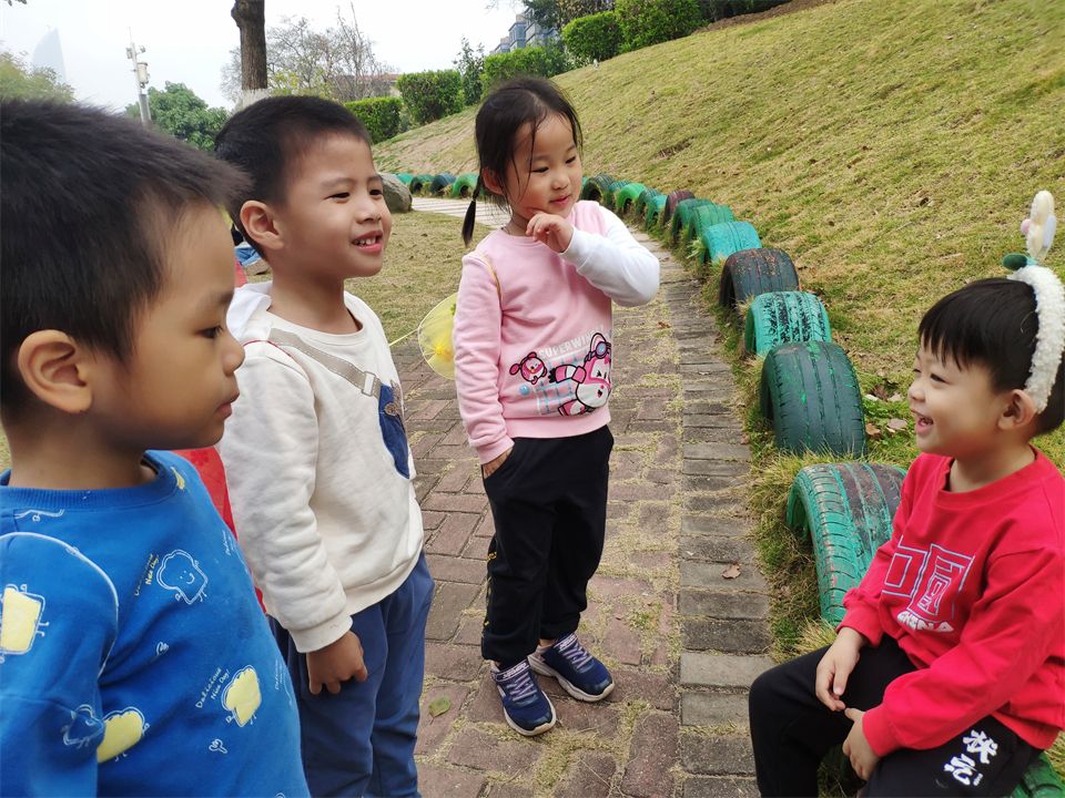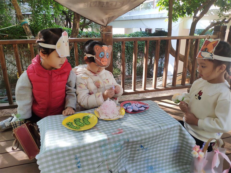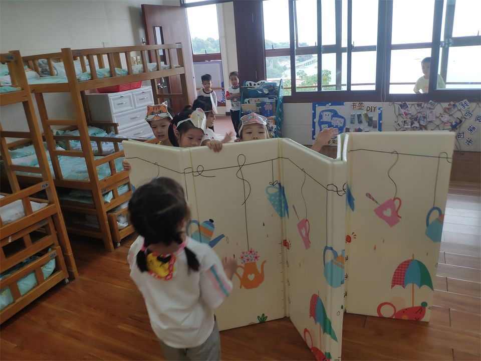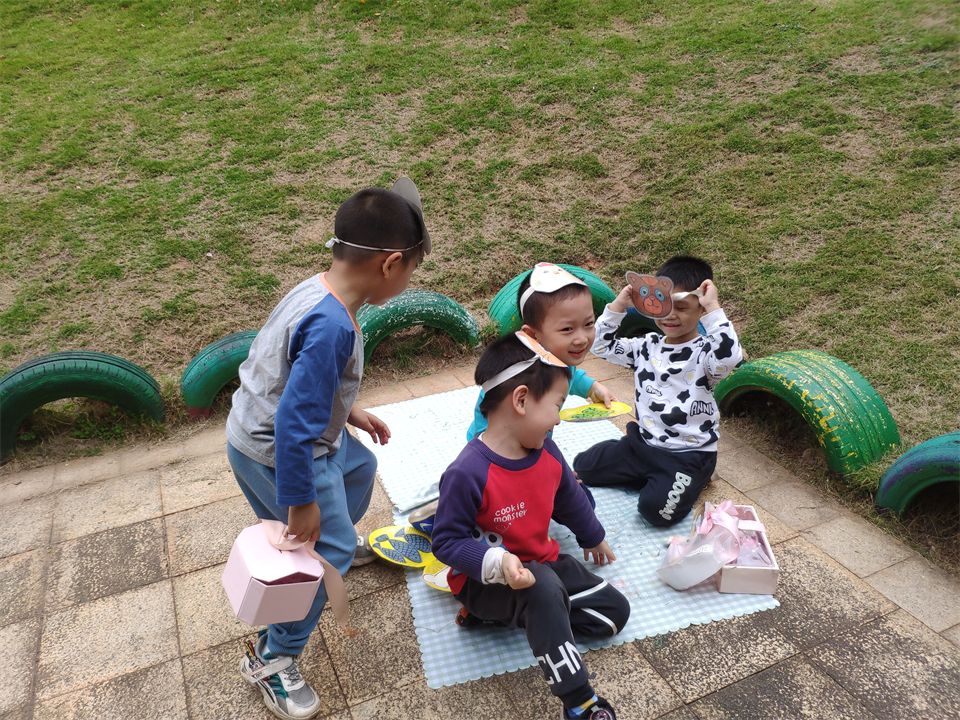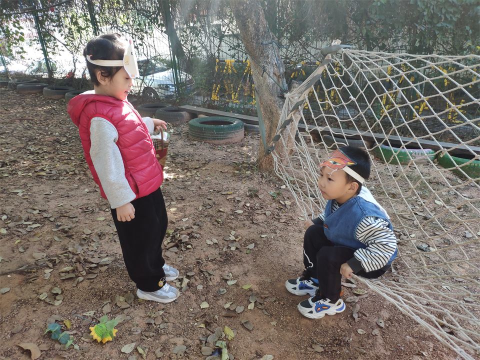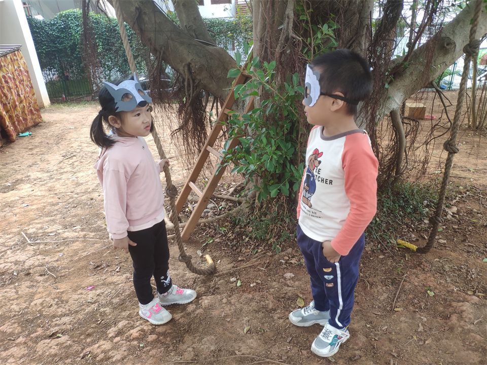 趣味无限的小山坡,也吸引着孩子们来到这里演绎精彩的童话故事。白色的拱门是大灰狼的山洞;高大的树后面藏着小兔乖乖的家;轮胎旁有着可爱的小花朵;在木桌上铺好桌布,小熊和朋友们快乐的聚会就开始啦;晃晃悠悠的吊床是可爱小狐狸的窝……中一萌娃们在美丽的大自然中畅享表演游戏的乐趣,欢迎你也来和我们一起演绎趣味童话故事。