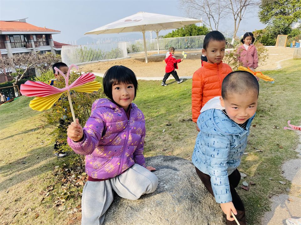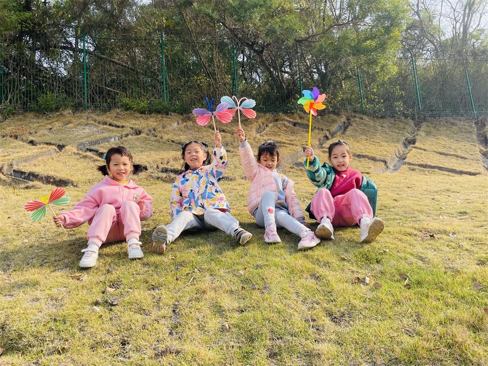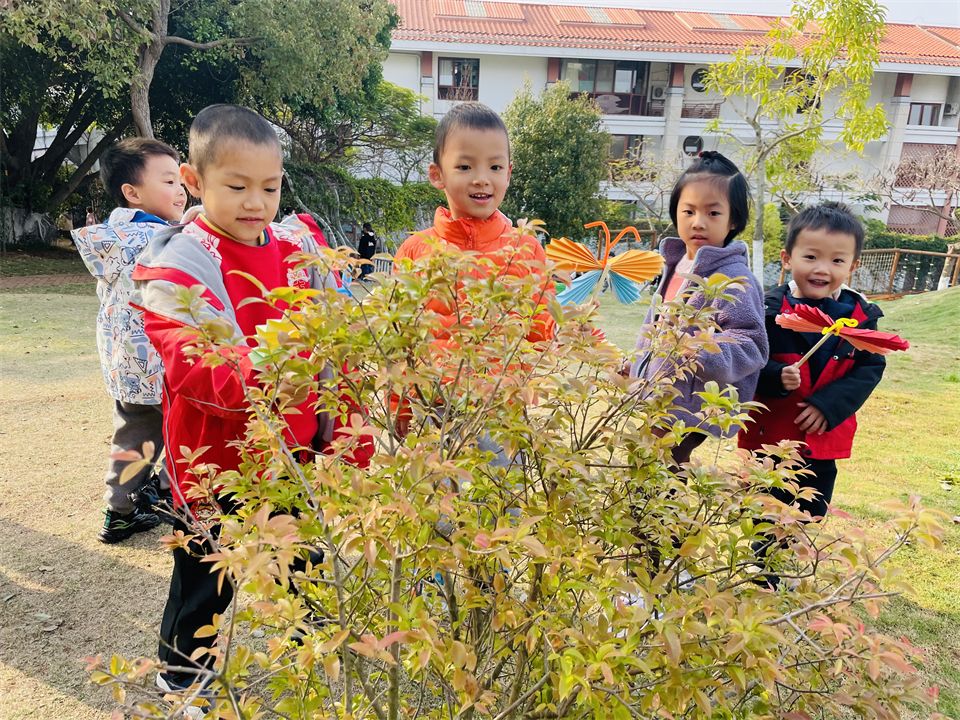 温暖的阳光照耀在孩子们的身上,一只只五彩的蝴蝶也被吸引过来。仔细一瞧,原来是孩子们巧手制作的纸蝴蝶。蝴蝶飞呀飞,飞到枝头上,飞呀飞,飞到了草丛里……